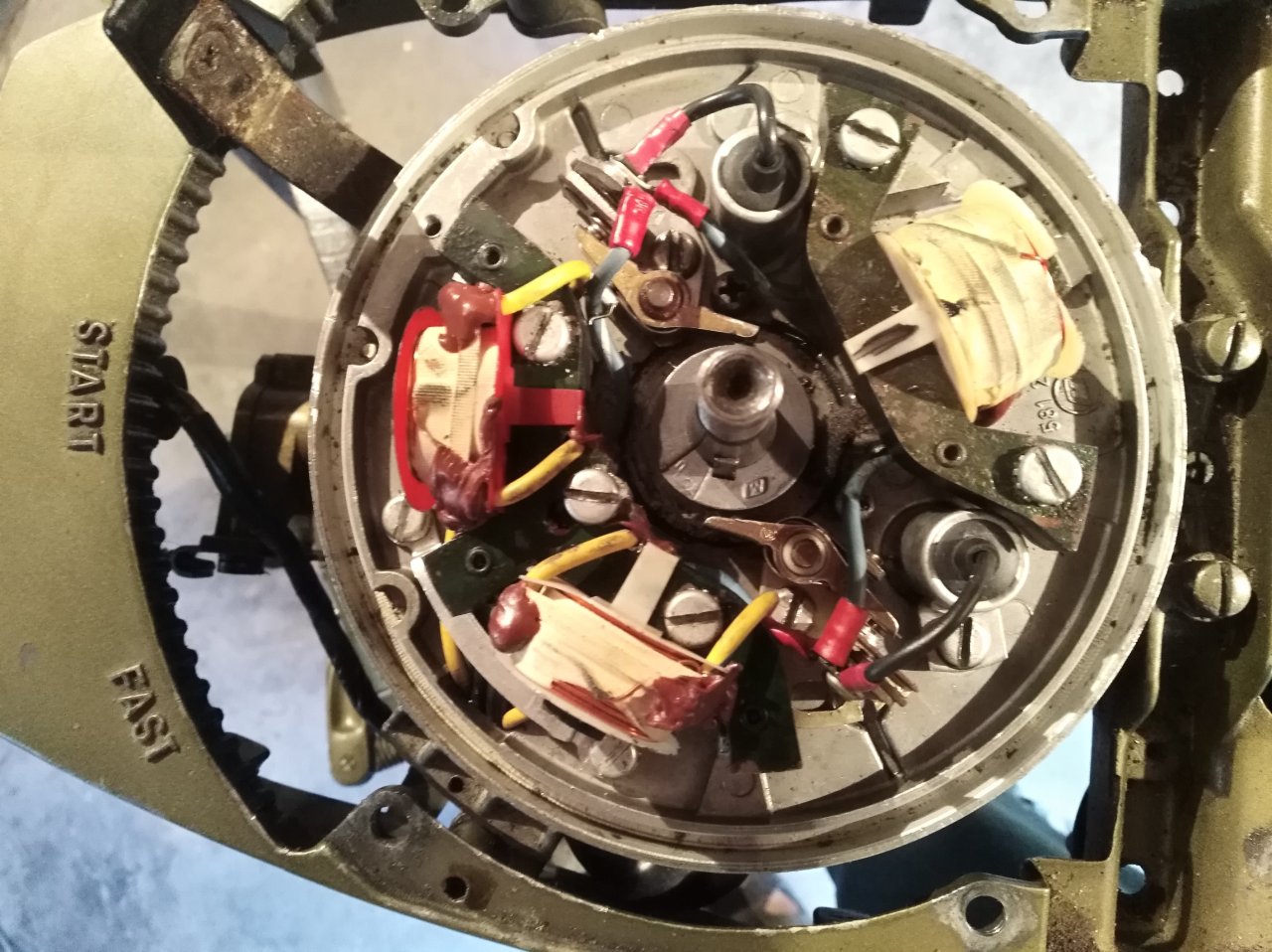 Тут чУдное корытце вокруг маховика, и если в маховик снаружи внедрить небольшой неодимовый магнит, или два магнита, то на нижний кожух можно поставить датчик, а его прикрыть каким нибудь алюминиевым коробком из чипаидипа.