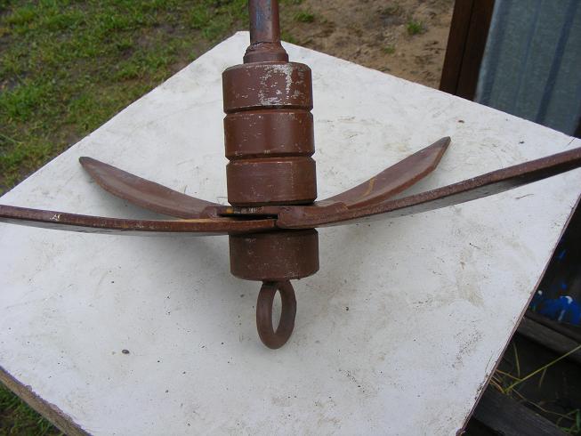 Хорошая конструкция. Можно взять на вооружение мотолодок. Только не понятно, почему именно "дать задний ход". Понятно, что сначала нужно опустить кольцо, чтобы оно было ниже перемычки-фиксатора 2-х лопастей. Якорный канат не будет же тянуть лопасти в обратную сторону при зацепе за какой-нибуть подводный трос или топляк. Из грунта, конечно, будет выходить легко. А, если за корягу, то только втрое кольцо внизу якоря с дополнительным линем и с поплавком на другом конце линя.