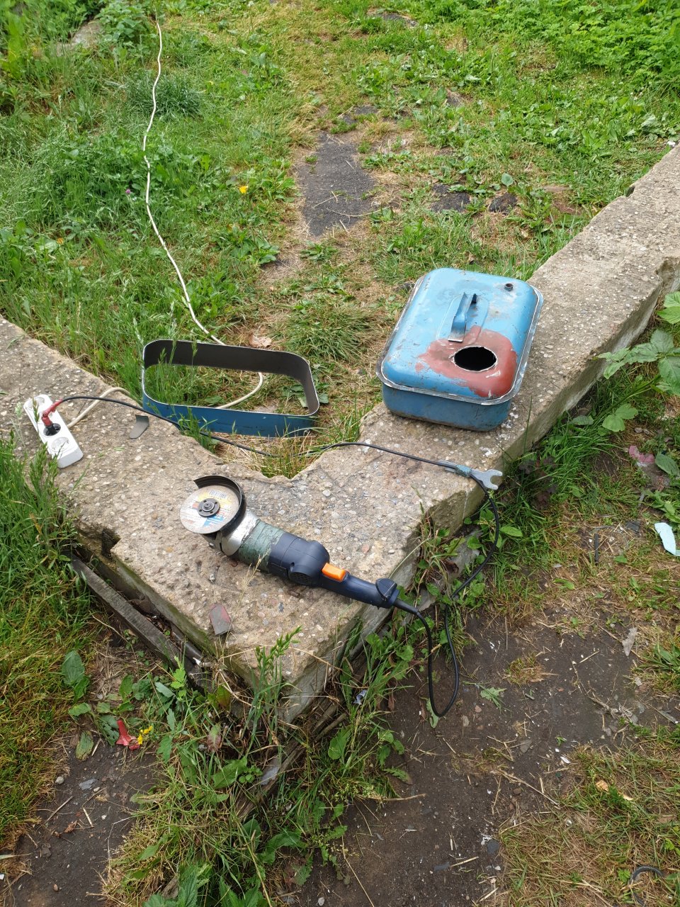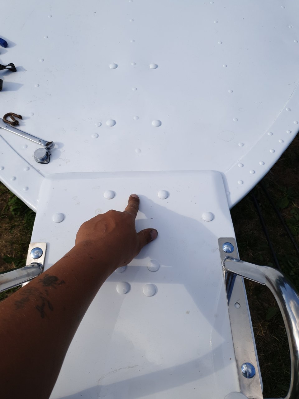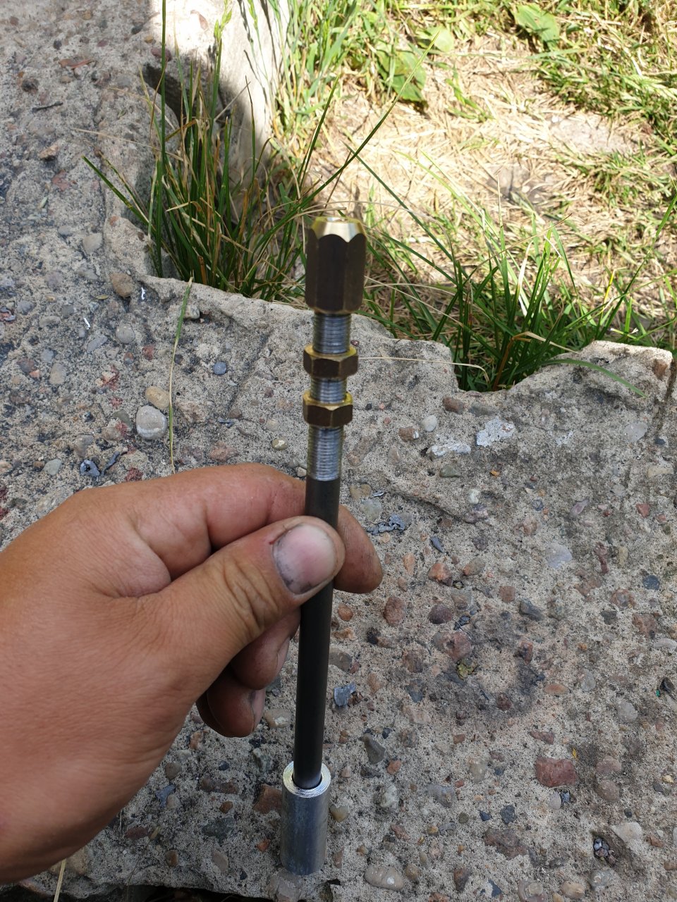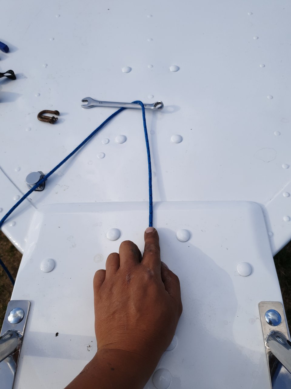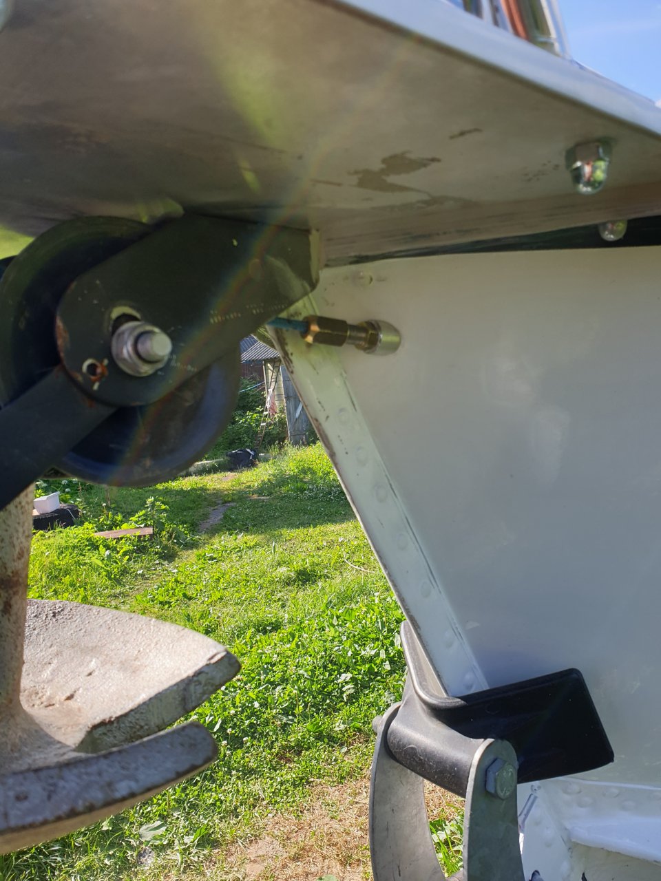 На первом фото видно четыри шляпки болтов, те что подальше , эта сама лебеда прекрепленна вверх ногами к четырем провелям 20×20×2 , бутерброт 40×20×2 на каждой стороне , идущие до самого форштевня, так как по середине в прогрессе 2м уголок тридцатый, на втором фото преклепленна плостина на бутерброд 40×20×2 , и к ней приварина трубка, напровляющая, как в газ 21 трос ручника :drugi:, на третем фото ключь это катушка на лебяде