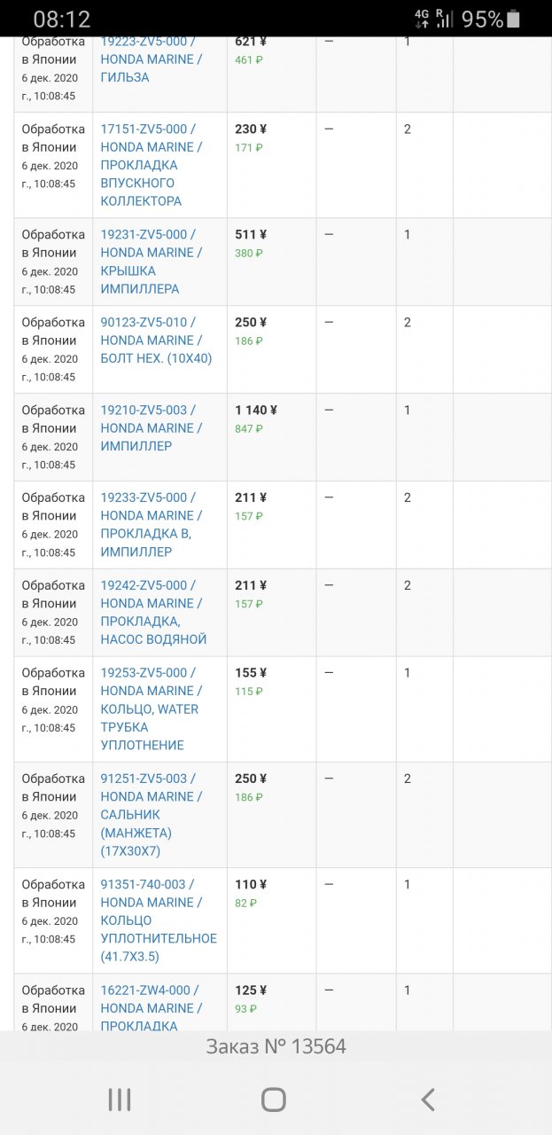 Пока до дому недобрался заказал немного делалюшек для хонды в японии, а то палил крельчатку раза 4, думаю ей кирдык, да и мотор старый поменяю сразу и кучу резинок ,64€с доставкой в рб:)