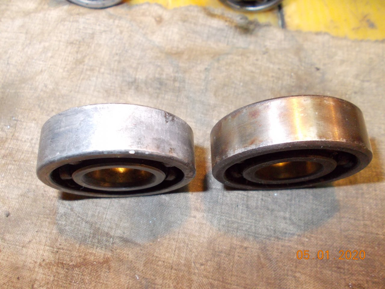 Стал промерять, а старый подшипник на десятку больше. Технари скажут "не может быть", согласен. Пригляделся внимательней, откуда лишнее. Оказалось наружная обойма обмазана тонким слоем алюминия. Второй подшипник для сравнения.