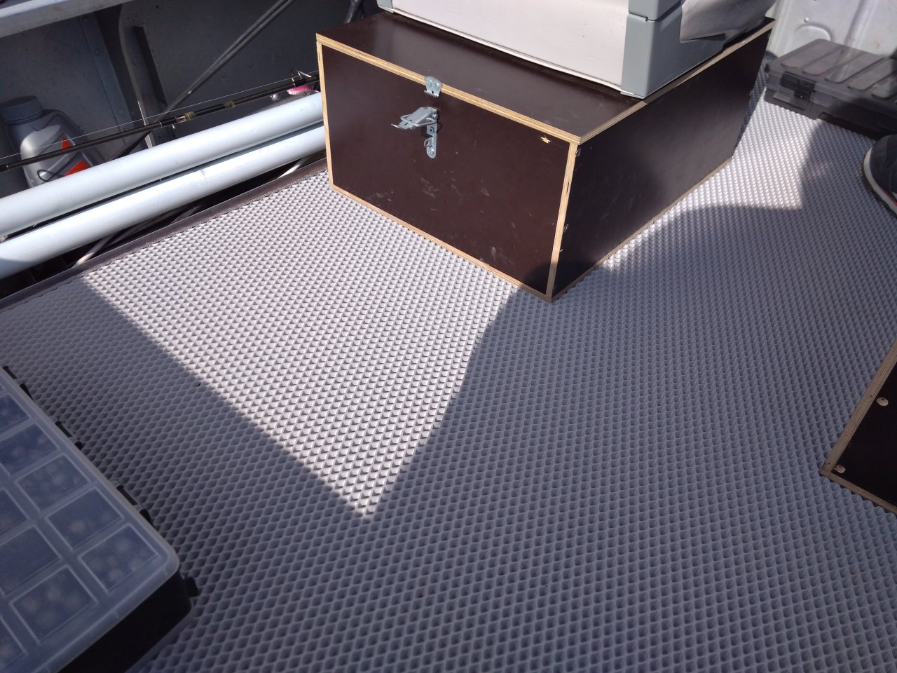 Когда оставались с ночёвкой то рундуки ставил в транец(по бокам от мотора) и крепил к лодке жгутами.Надувной матрас на пол и СВ купе получалось! ;)
