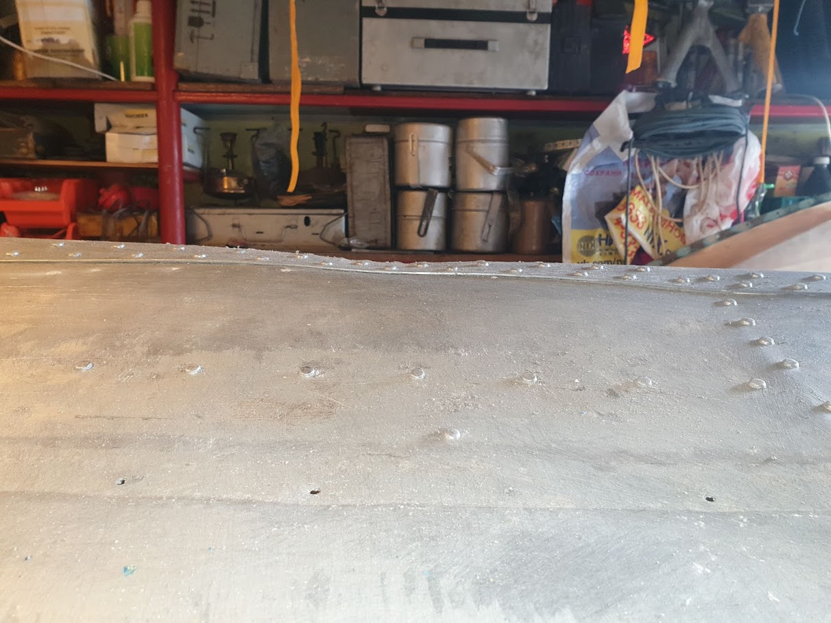 Тут Докер в теме покраски писал, что один раз попробовав смывать краску смывкой, второй раз отдашь предпочтение песку. Вот прям в точку! Но борта и низ закончил, предварительно отклепав все 4ре гидрошайбы. Листы ничем я не обдирал, это дело рук предшественников. Теперь буду убирать остатки потертых заклёпок, зачищать и грунтовать кислотником.