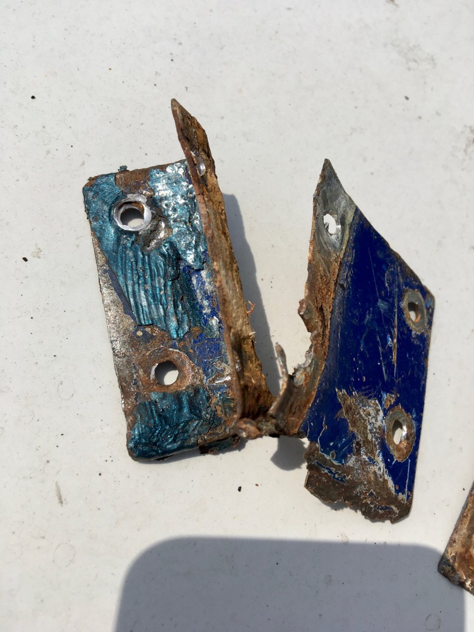 Столкнулся с тем, что накладки (и форштевень) на скулы сделаны из разного металла. Те, что ближе к корме дюраль, те что ближе к носу, похоже на нержавейку.