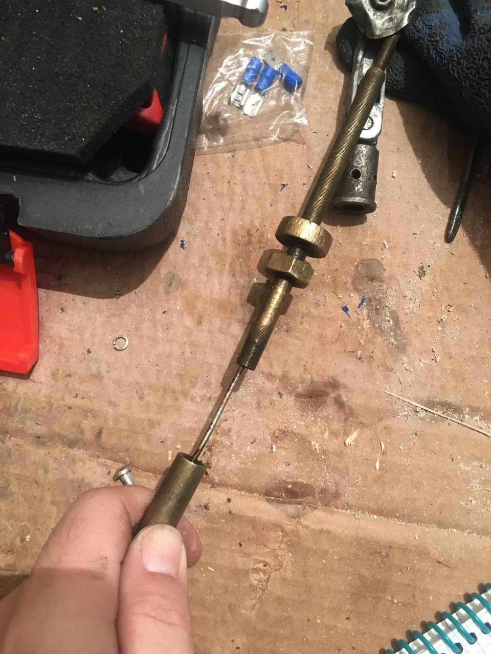Судя по фото тросов в интернете их конструкции особо не изменилась. Трос вкручивается в корпус машинки, тем самым регулируется его ход. На конце троса прикручивается крепление для подсоединения рукоятки.