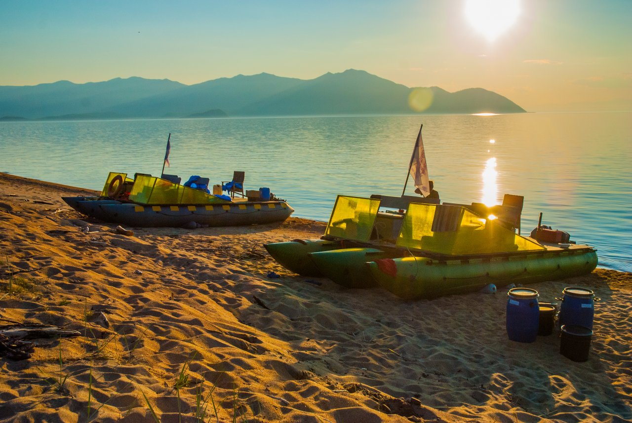 -Средство передвижения по о.Байкал большие моторные тримараны где комфортно размещается до 8 человек плюс груз.