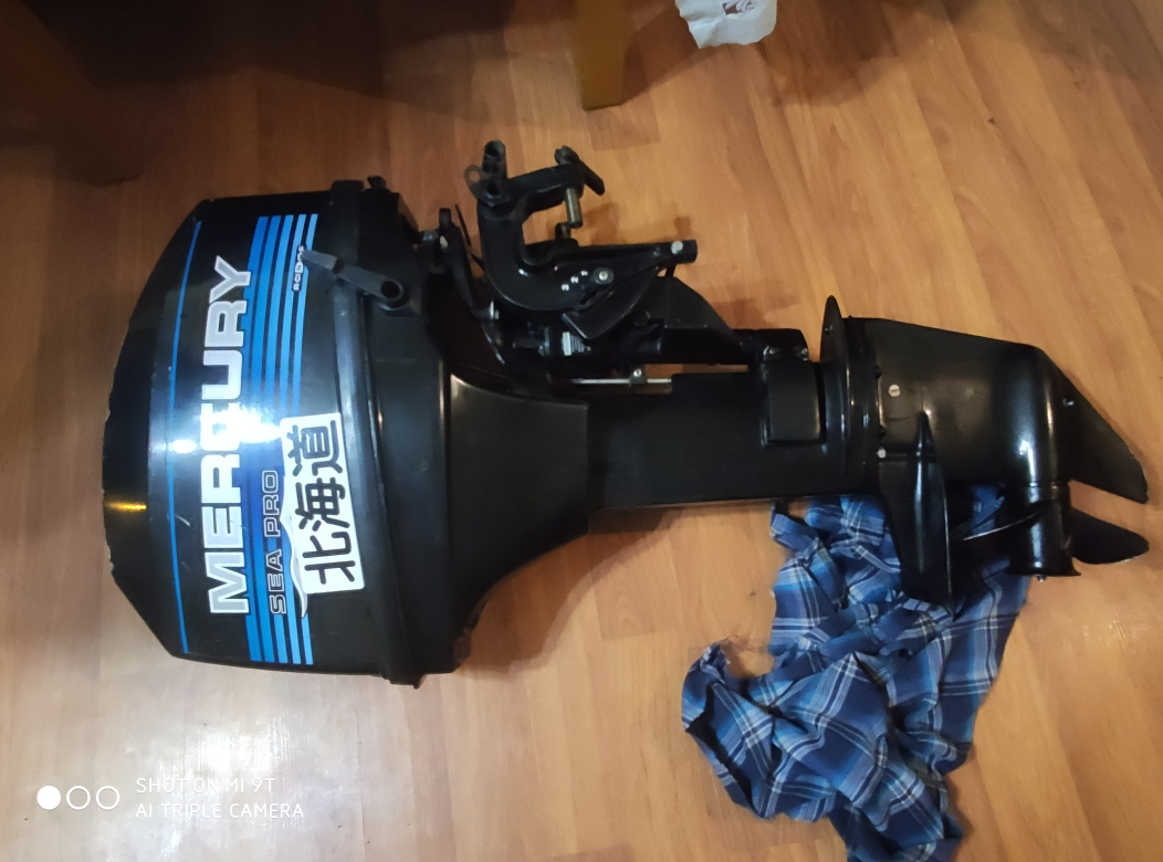 Купил с рук бу Mercury 15 SeaPro, ввезенный с Японии. Когда пришел с Владика возникли смутные сомнения. Визуально мотор больше, чем имеющийся у меня Mercury 10 SeaPro, примерно того же года выпуска. На копке цифра 15, под колпаком на этикетке Mercury 20/25. На ноге номер 0G233259. На силовой головке, на табличке: иероглифы и два номера 951250 и 233259.