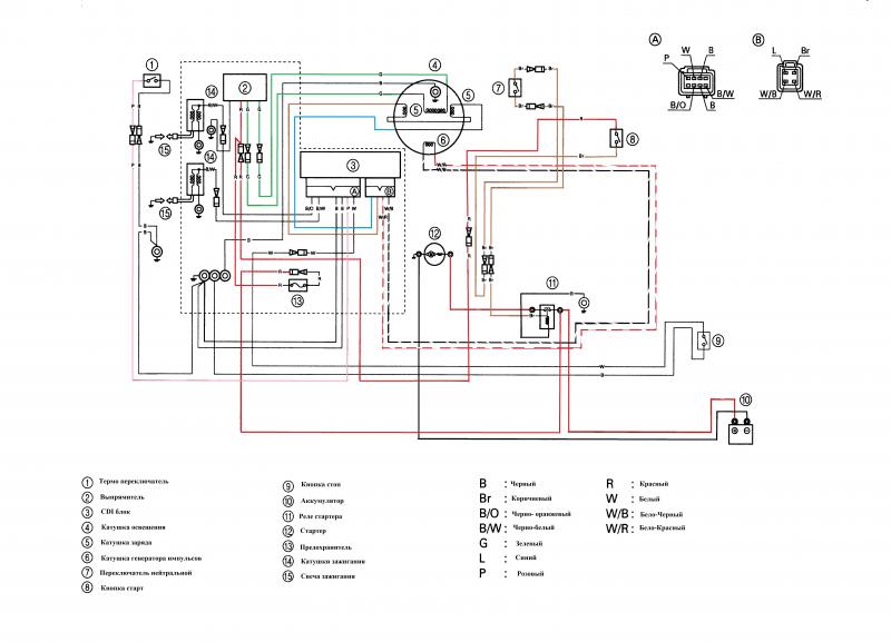 Вот, нашел электросхему Ямаха 40 2-х тактная 2-х цилиндровая.Перевел на русский.