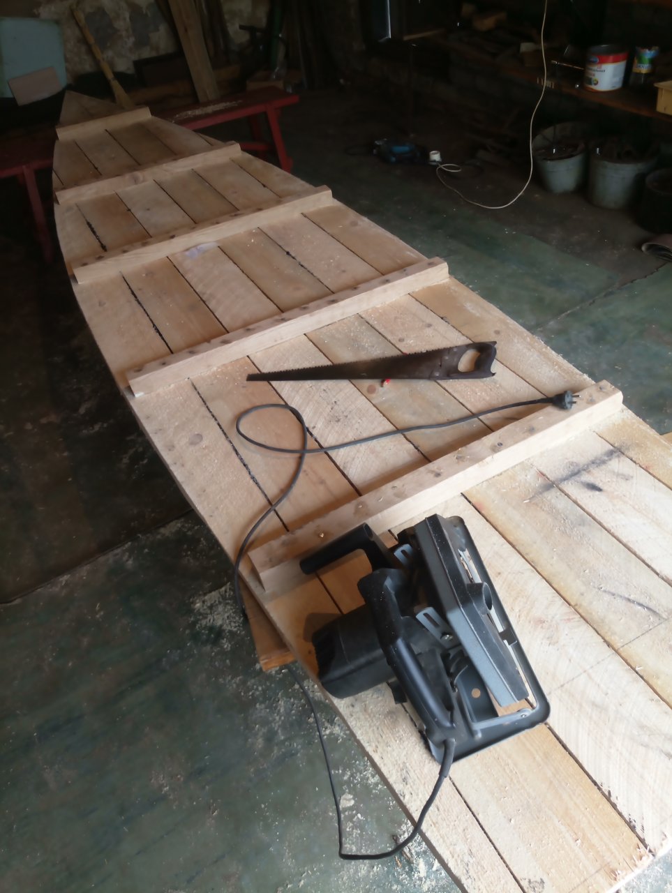Думаю скулы правой и левой хватит, когда их на воду положешь. Сейчас у тебя все в воздухе висит, на что лодке опираться в повороте? И доска так же в воздухе повиснет.