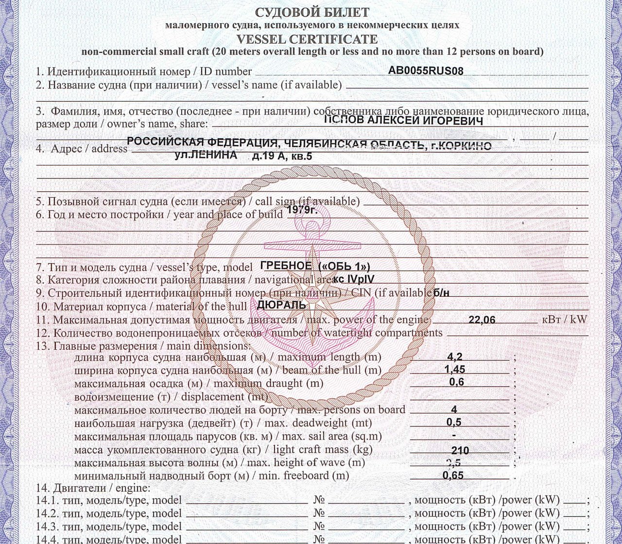Добрый день,хочу купить лодку Обь,скинули фото документов,по характеристикам не бьётся ни с одной лодкой Обь.помогите пожалуйста,фото лодки нет