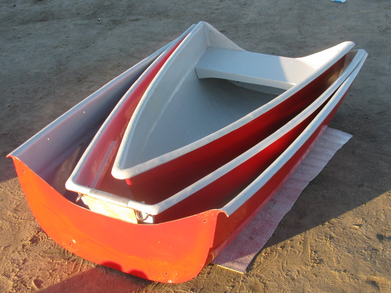 Лодка "Стрелец 460" . Длина 460 см ширина 96 см борт 37 см. Для двух человек и 50 кг багажа. Сделал для себя и друзей несколько штук в том числе трёх-секционную, чтобы возить в багажнике "универсала". На верхнем багажнике перевозится легко, 30 кг. Если кому-то интересно можно обсудить.