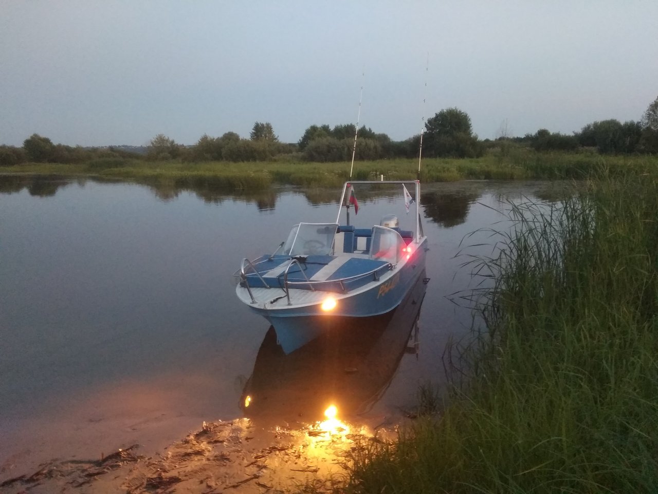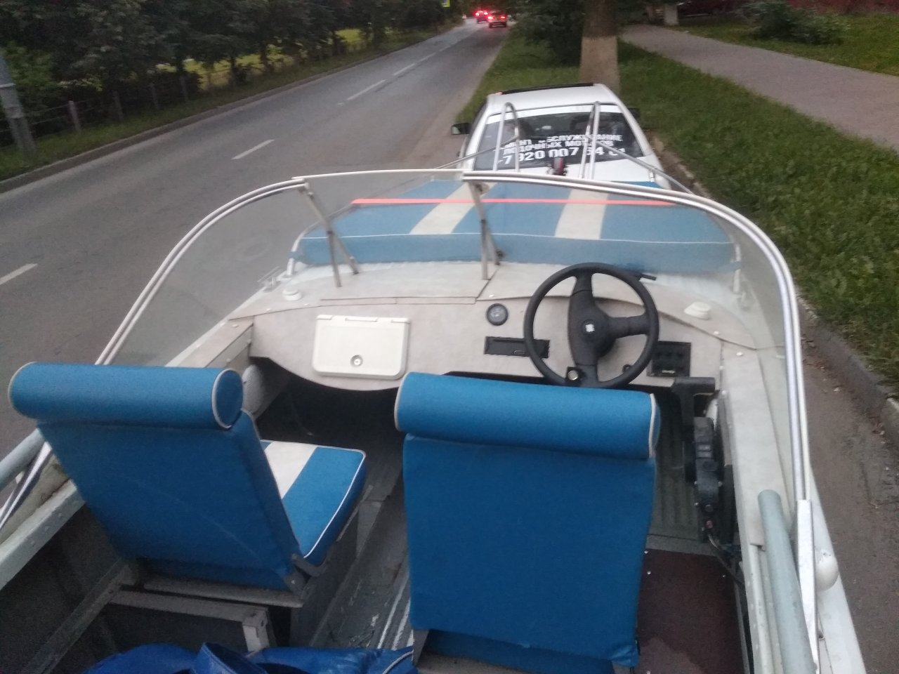 Я занимаюсь ремонтом лодочных моторов и однажды я поехал к одному клиенту запустить и обслужить Хонду 50. В процессе работы узнаю, что клиент продает лодку и я согласился купить. Отказаться было трудно от такого леденца в такой комплектации. Лодка доведённая до ума по внешности, но почти без изменений по кокпиту. Пайолы я перестелю потом, ну и борта нужно зашить. Установлю эхолот, поставлю усилитель для музыки, доработаю по другим мелочам. Нужно перетрясти проводку в прицепе. Не горят некоторые габариты. Думаю, обойдусь лампами.
