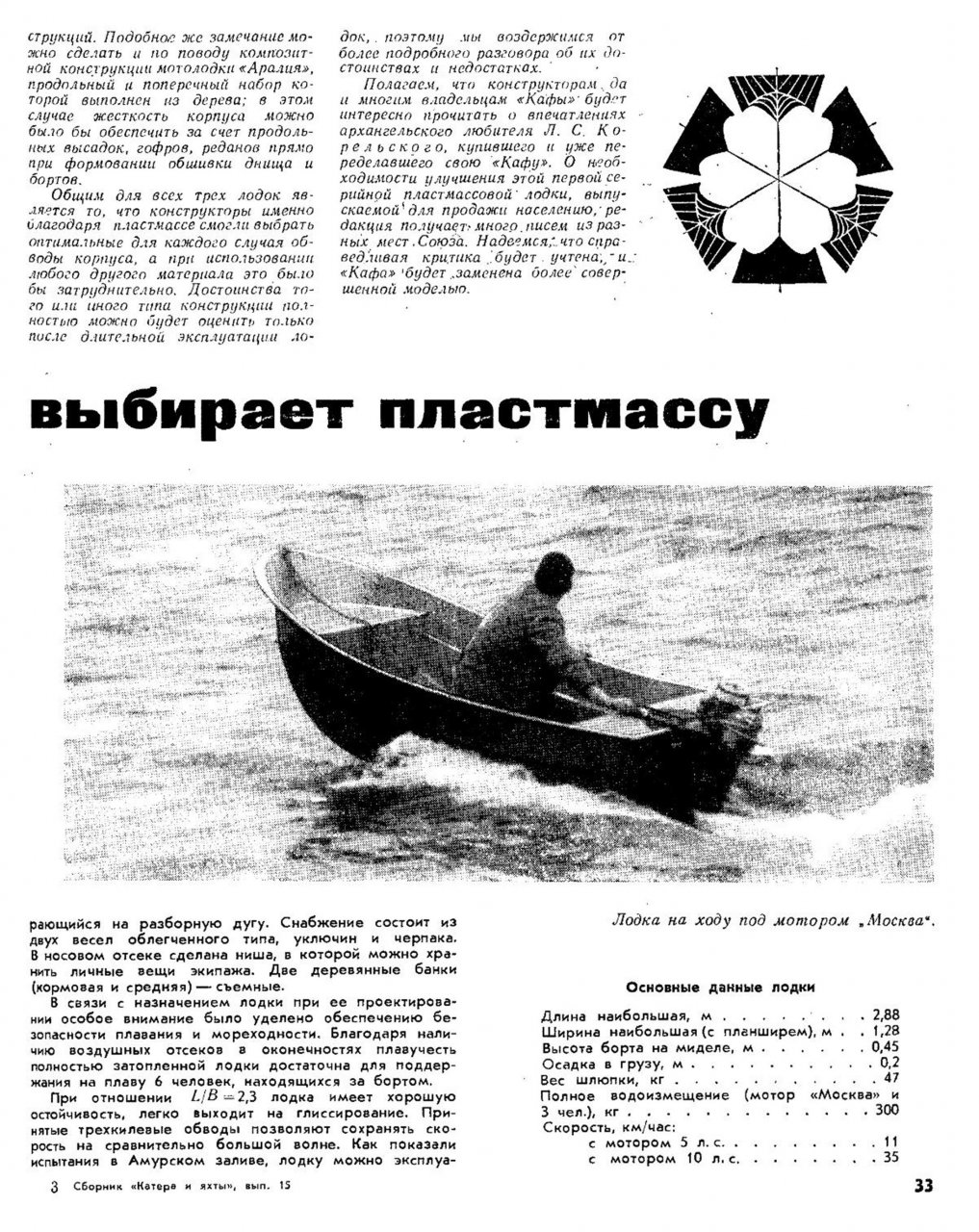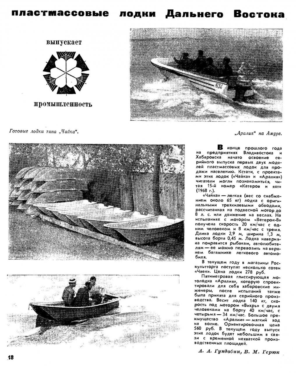 Здравствуйте форумчане. Кто-нибудь сталкивался с подобной лодкой. Производство Дальзавод. Описана в журнале "Катера и Яхты" №15 и №18, 1968-69 гг.