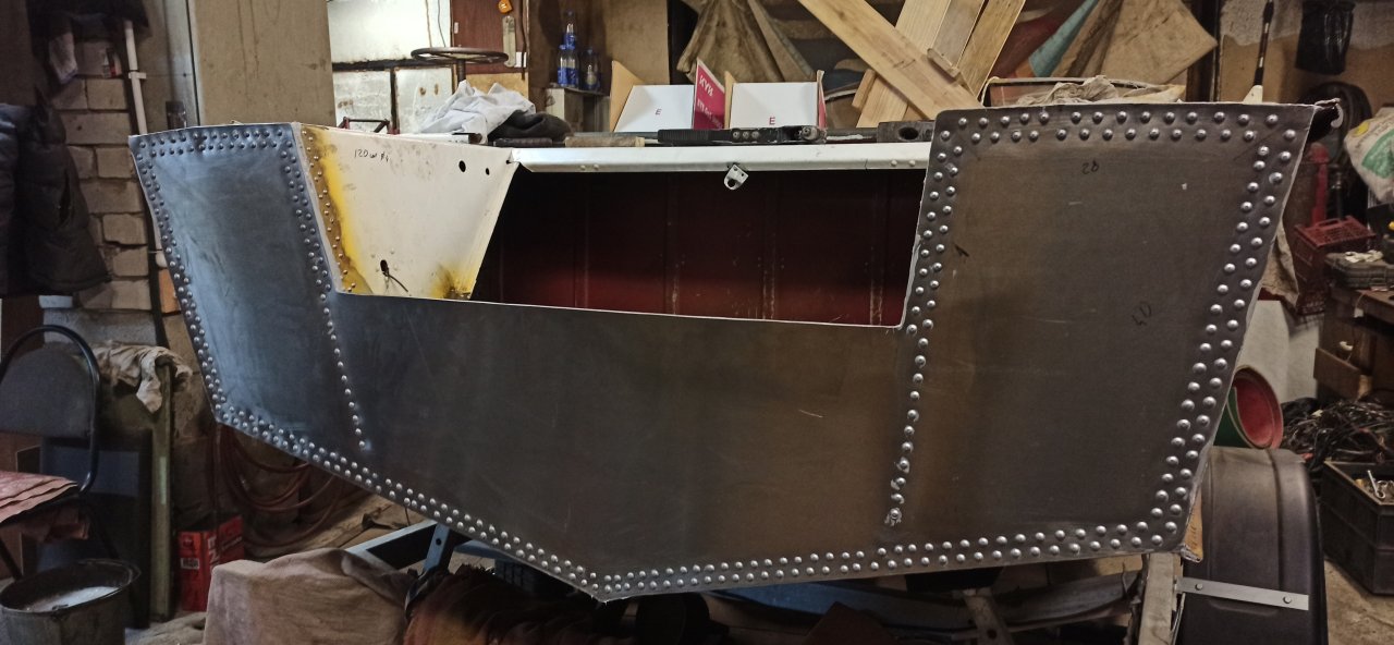 Вчера, после работы, отправился в гараж к любимой посудине и остался у нее до 5 утра!))) Вообщем натра.... вволю.. :( Лист заклепал. Получилось скажем так - удовлетворительно. Очень неудобно добираться изнутри к некоторым клепкам. Да если еще при этом руки заточенны под одно место ввиду отсутствия подобного опыта. Что получилось - то поПосмотреть вложение 200784