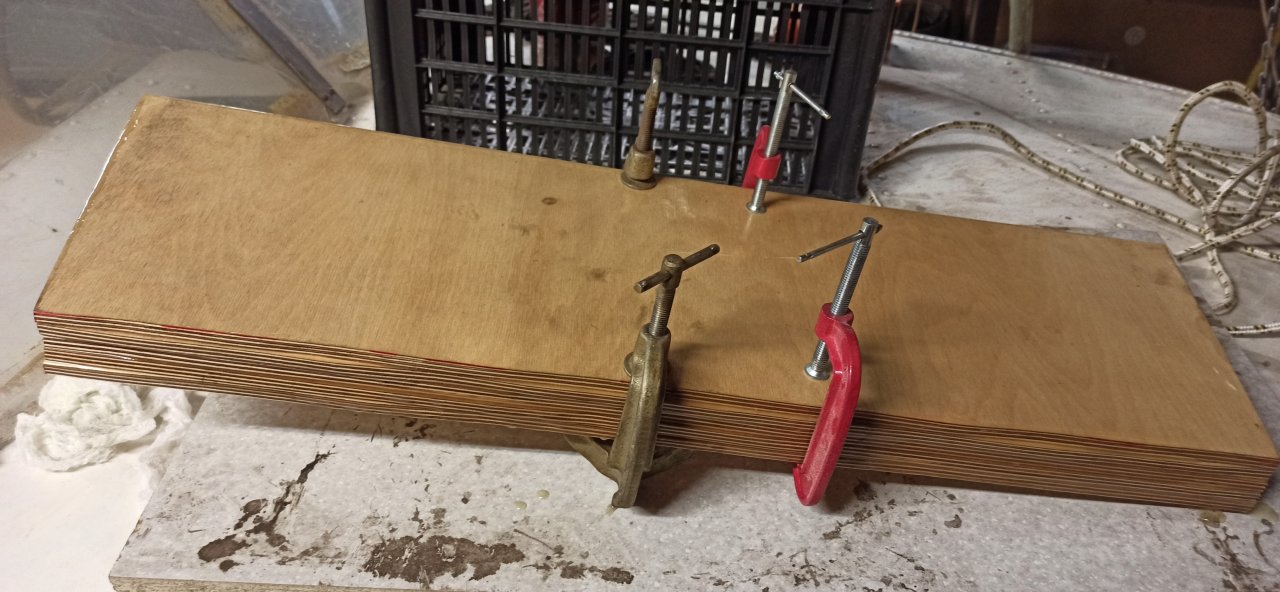 Привез, сделал шаблон, выпилил 5 заготовок, получилась толщина 45, да + лист комовой и лист рецесса 2мм, в общем 50мм. Думаю достаточно. Стяну саморезами, промажу яхтным лаком торцы. И должна получиться нормальная доска.