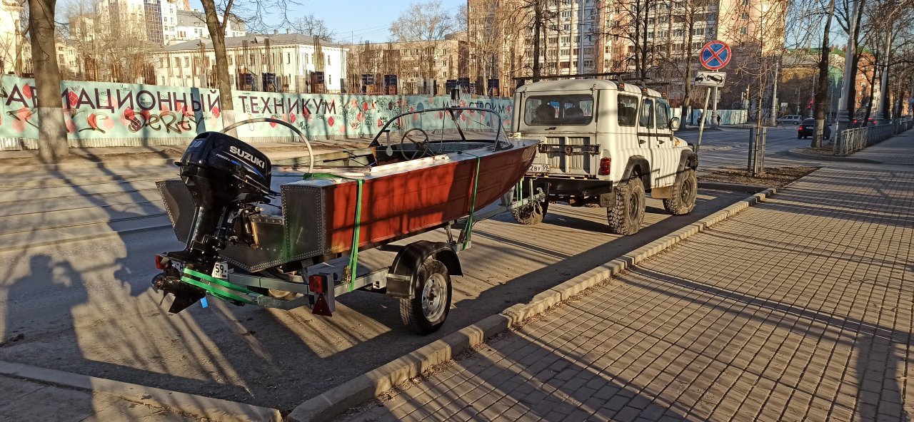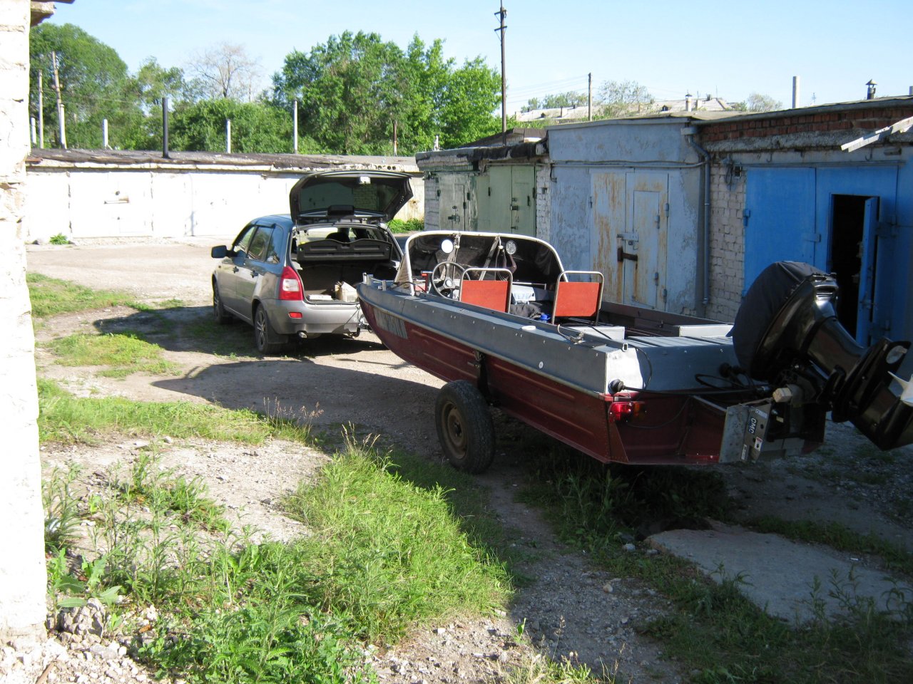 На данный момент лодка в городе и до того места где она будет "жить" -160км. А там, от дома до слипа 500м по деревенской, грунтовой дороге))