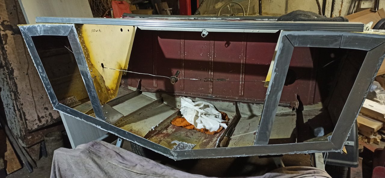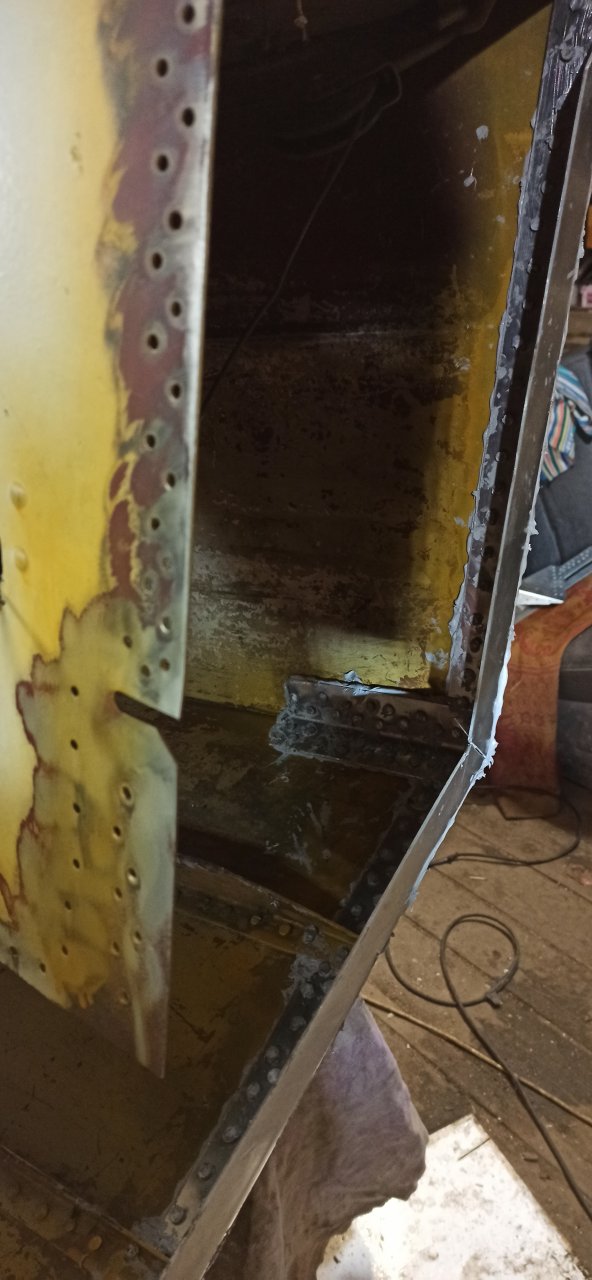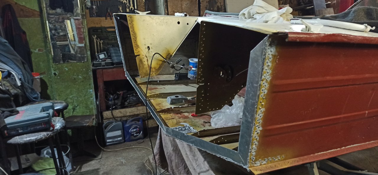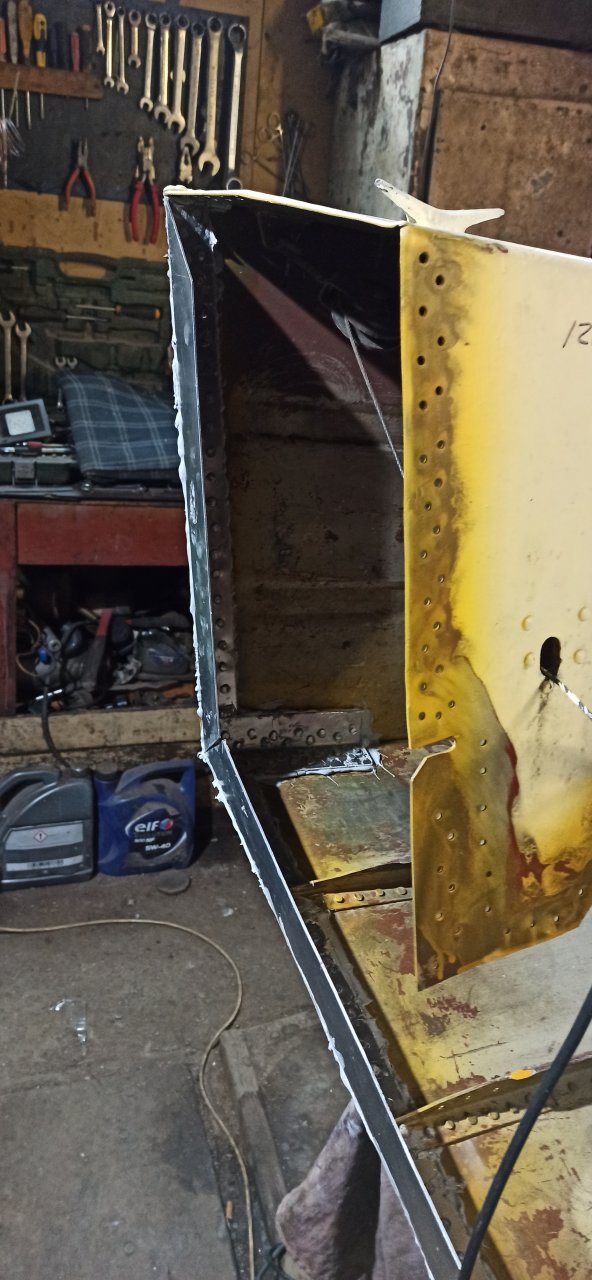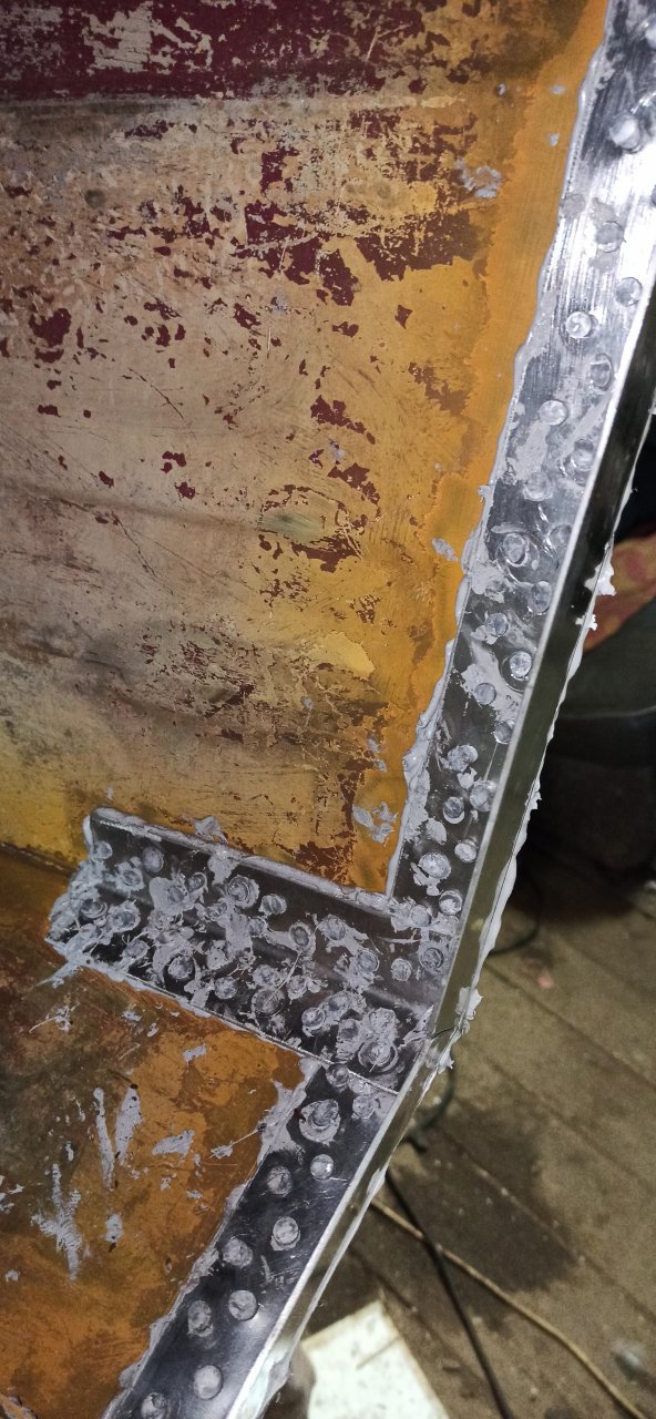 Доклепали оставшееся.. Верхняя часть получилась отвратительно.. :(. Особенно в углах.. Поддержка ( обычный молоток) плывет по заклепке, заклепка гнется и расплющивается. Оставил пока так, сил и терпения уже не хватило пересверливать и клепать по новой. К тому же не факт что новая будет лучше.