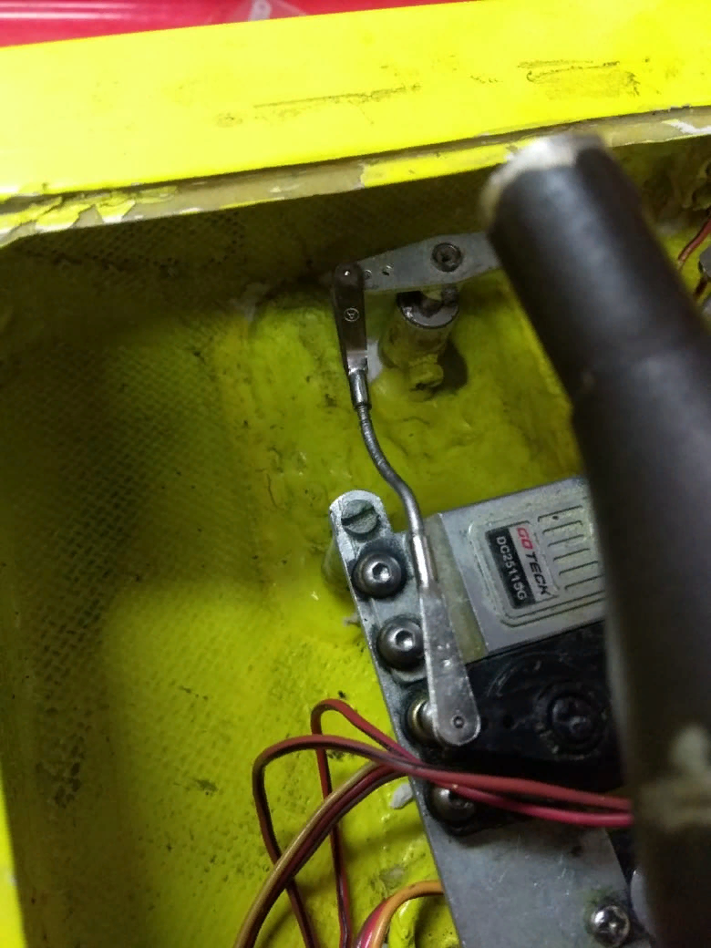 Привод плиты - стальной шток с передачей винт-гайка. Шток шарнирно соединяется с плитой. Винт с очень большим шагом (по сути червяк) принадлежит штоку , неподвижная гайка с таким же шагом запрессована в колонку - трубу , колонка жестко приклеена к днищу внутри корпуса лодки.
