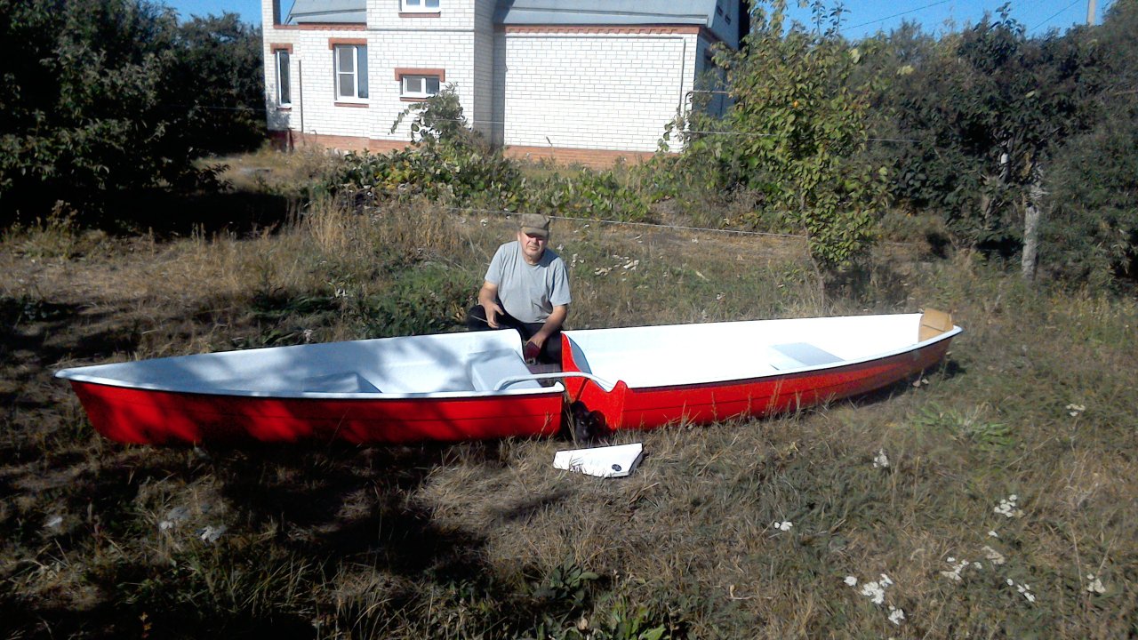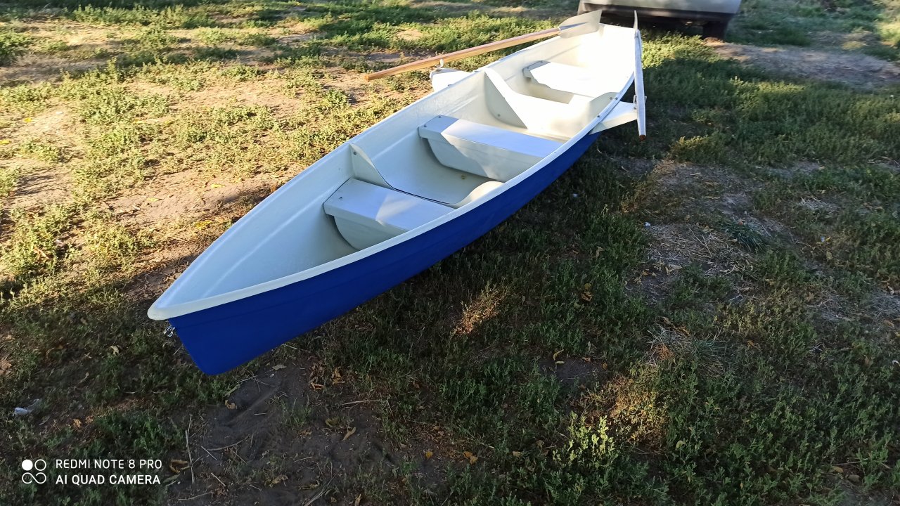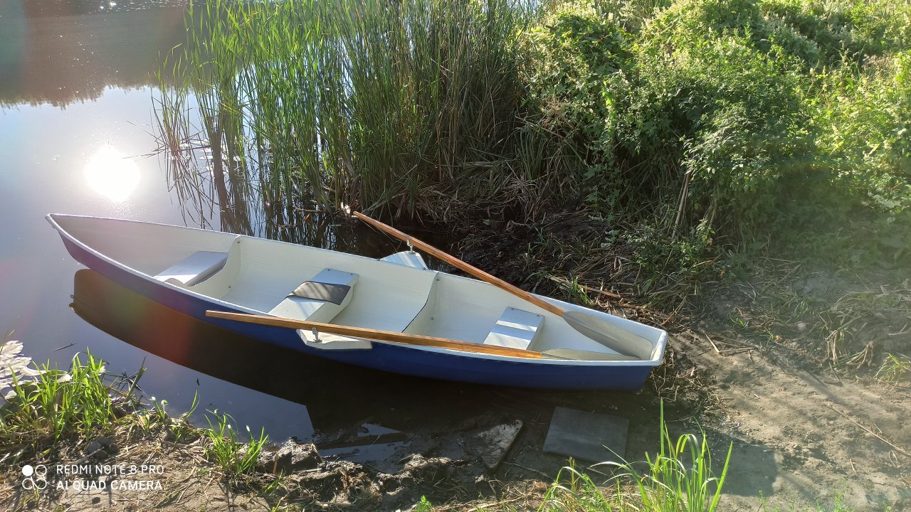 Такая лодка ; длинна 460 см, ширина 98 см, борт 38 см (на миделе), вес 45 кг. Грузоподъёмность 300 кг. Стеклопластик. Можно поставить мотор на 2 л.с.