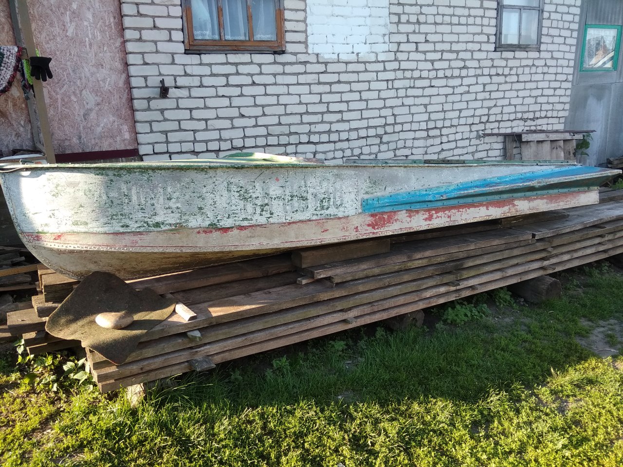 Лодка в неплохом состоянии, требует немного приложить руки и покраску. Танцевую доску уже поменял на текстолит. Срезал лишнее железо, отмыл лодку, решил вопрос с документами, буду восстанавливать непотопляемость с помощью пенофлекса. Покрасить хочу в черный матовый цвет, а поверх нанести камыш , чтобы проще прятаться в камышах.