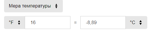 16 градусов по Фаренгейту = - 8,89 по Цельсию