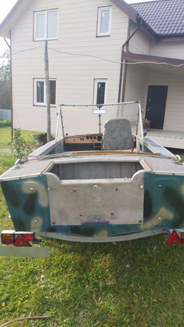 Благодаря форумчанину и товарищу по рыбалке BorisMan, спустя несколько лет обдумывание я все-таки решил забрать у тестя лодку после 10 лет простоя у друга в огороде под тентом. Лодку использовали под 60 сильным двигателем. В ней установлен бак из нержавейки на 150 литров. В планах убрать полностью салон, установить блоки плавучести, снять карпет , сделать самоотливной рецесс ну и дальше как пойдет.