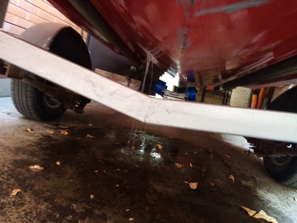 Вообщем лодочке досталось видимо какое то воздействие было, образовалась трещина когда зашкуривал примерно 70см вообщем что бы закрыть сезон поставил заплату .Но все равно где то немного подтекает если стоять на рыбалке то ведро за 2-3 часа ,на скорости за час пару ведер набегает.