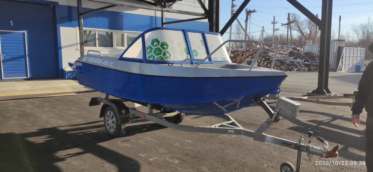 Уехала моя казанка 5м1в Нижний Новгород. Практичная лодка была,места много,не смог только побороть рыскание и притапливание носа на скорости больше 35 -40. Это и стало решающим фактором продажи лодки. Мотор оставил себе. Заказал себе Неман 450 DC,делали 1,5 месяца.забирать ездил сам на завод, доставка 12 тыс -меня жаба задавила,потом предлагали попутным транспортом - 8 тыс,тоже отказался,надо было бы ещё и погрузчик нанимать. А так по бензину мне встало около 4 тыс, плюс порванная стропа ( пришлось покупать по дороге на азс).