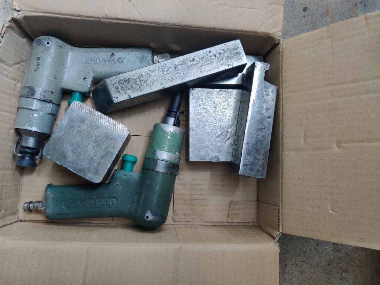 Изначально хотел купить КМП-24, но они стоили больше 10 тыс.руб. б.у тоже не нашел нормальный вариант. В итоге купил пневмомолоток Sumake примерно за 1800 в "Все инструменты". Модель могу точно сказать в понедельник. Характеристики по мощности у него такие же, как у КМП. На родной насадке отрезал кончик и сделал ямку под головку заклёпки. В процессе реставрации лодки купил 3-4 кг заклепок. Почти все их израсходовал. Пневмомолоток ещё работает. Для профессионального использования бы не посоветовал, но для реставрации одной/нескольких лодок за глаза.