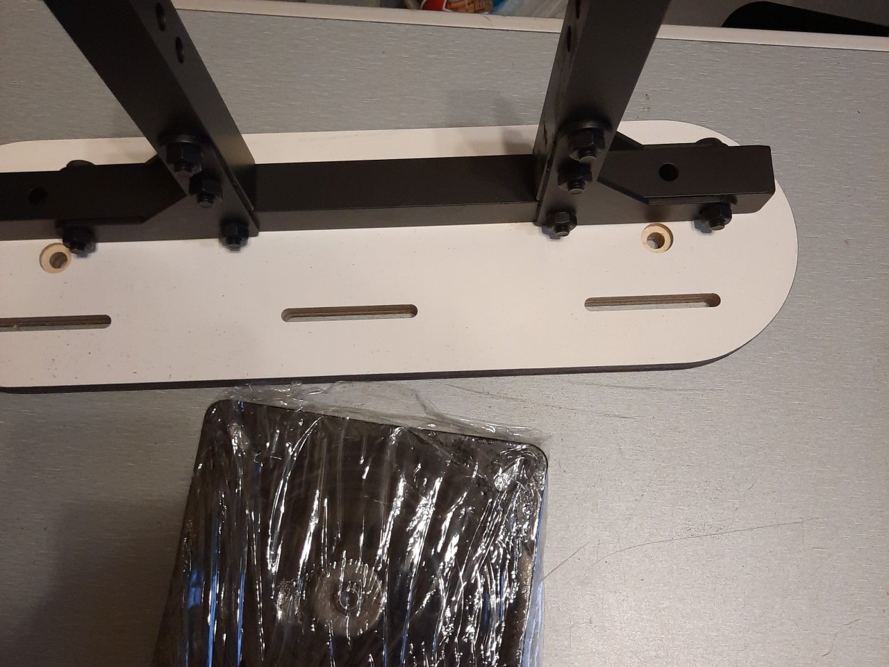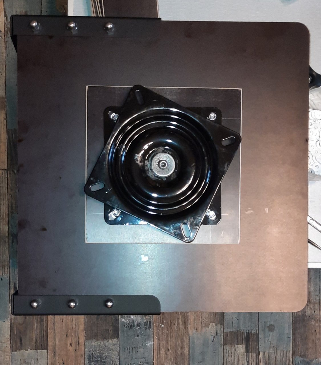 Между фанерами две самоконтрящие гайки.