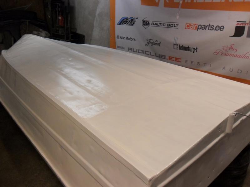 Доброго времени суток всем водномоторникам. Живем мы в далекой холодной Эстонии и дабы наши темные вечера не были особо скучными, приобрел я лодку Крым. Состояние лодки при покупке было удовлетворительным - старая краска местами облазила, транцевая доска сгнила, пайолов не было. Стоял старый рулевой механизм о двух тросах, который сразу же по параболе полетел в металлолом. На сегодняшний день лодка окрашена, палуба застелена, мотор установлен, изготовлено несколько рундуков, приборная панель и еще некоторые мелочи. Много работы еще впереди, но время есть ибо раньше весны на воду не планируем. Выкладываю некоторые фотографии процесса.