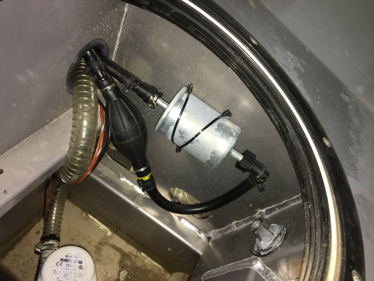 Такой филтр имеет право на жизнь в лодке только,если будешь раз в год в бак наливать или ацетон или растворитель,чтобы связать между собой и бензином накопившуюся за зиму воду.А так-не совсем тот,который нужен в лодке.Да-такой фильтр будет работать,как и обыкновенный-прозрачный пластиковый,но-до поры,до времени!Фильтр бензиновый обыкновенный) снял, слил бензин в чистую тару, даже капель воды нет, поставил обратно дабы система была герметична. Перед сезоном поставлю новый, надо ещё кронштейн придумать.