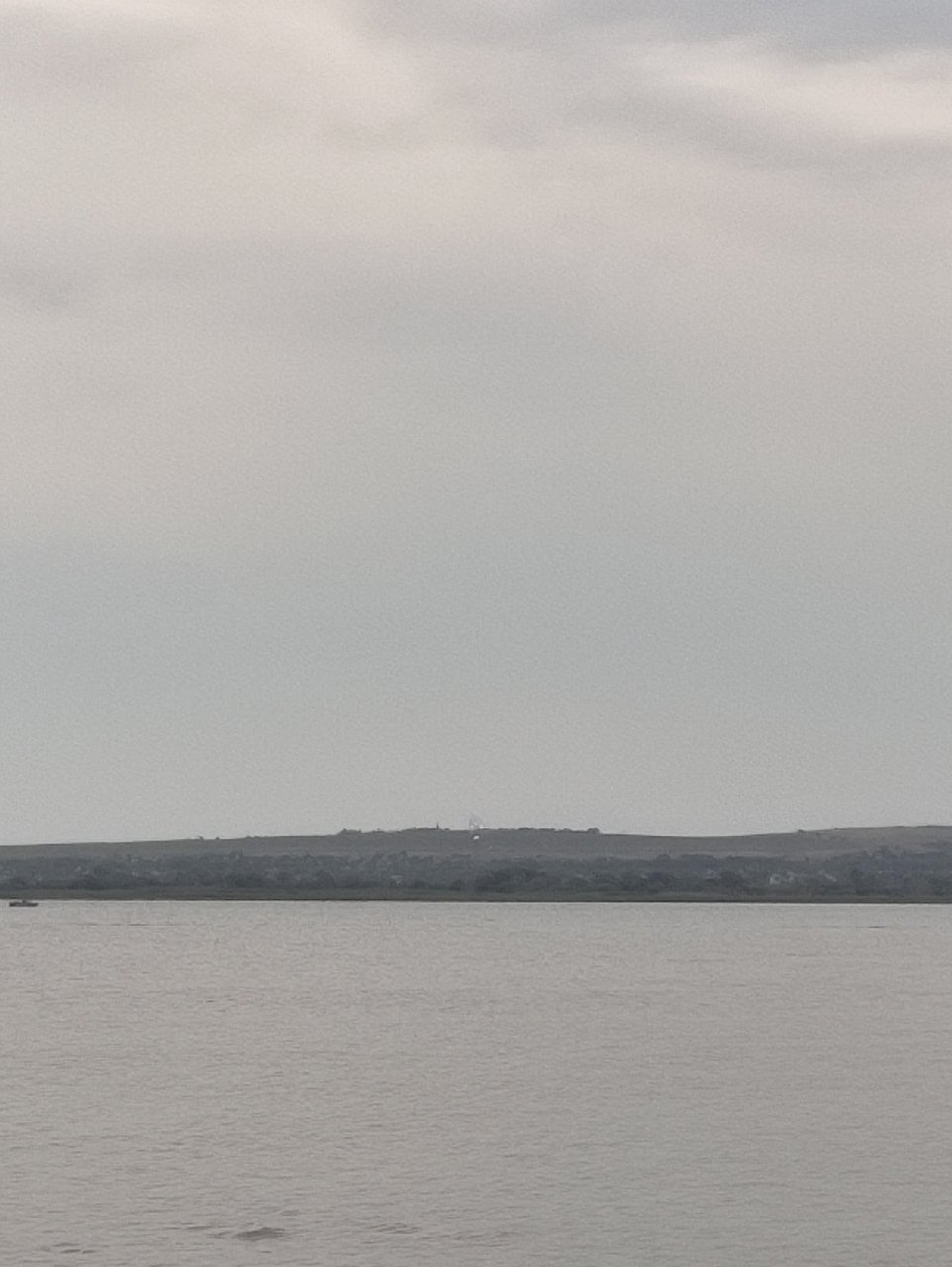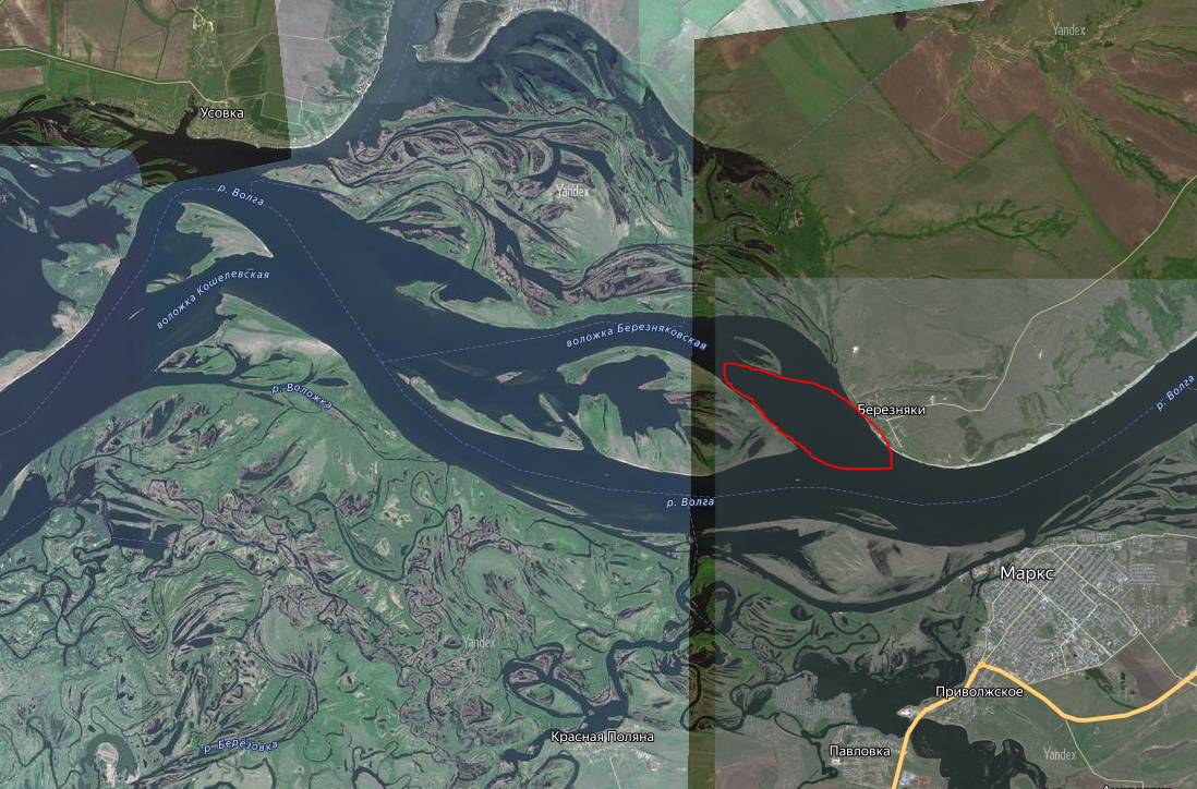 На против города есть остров вообще без травы (перед лесом протока)