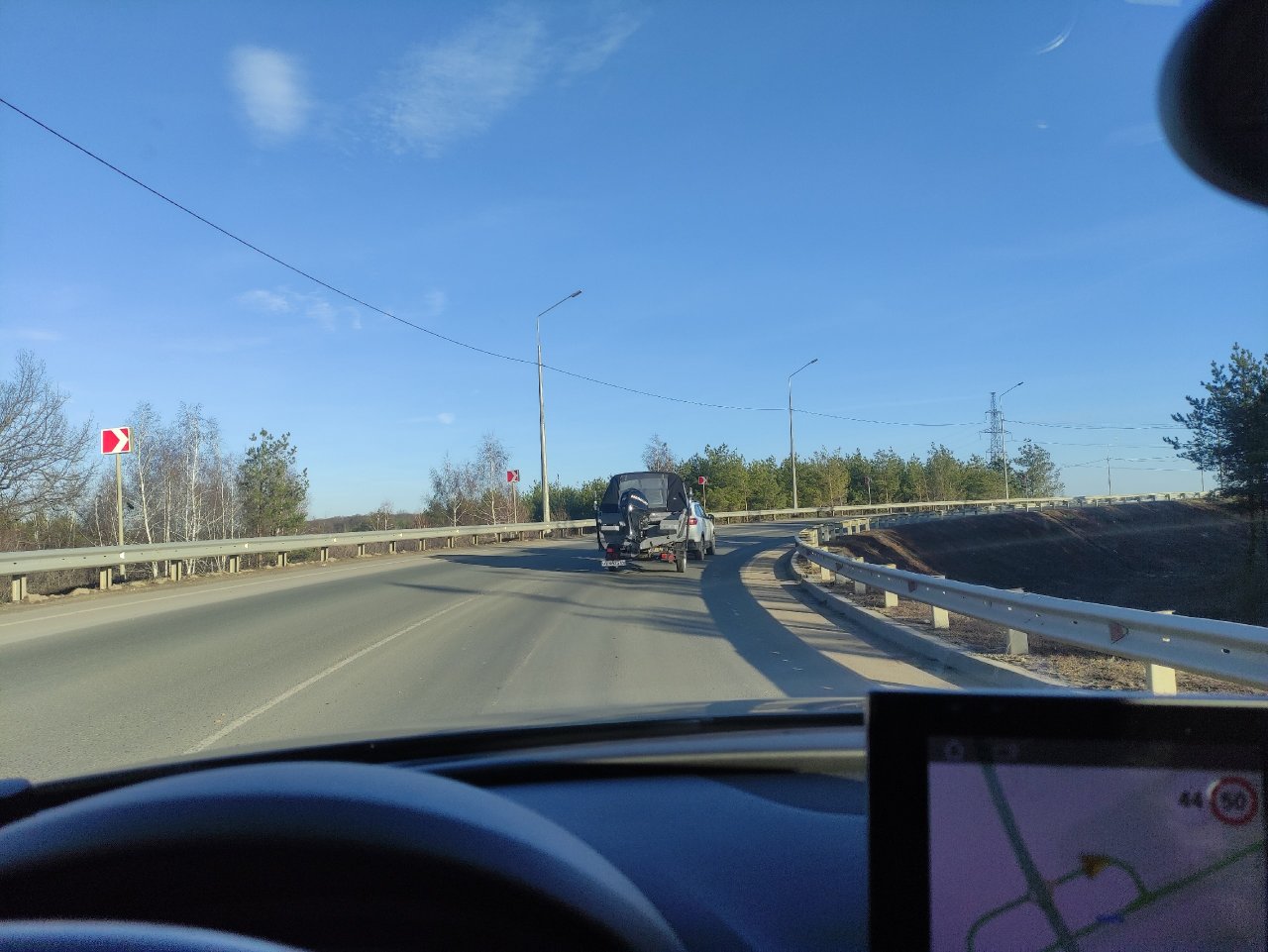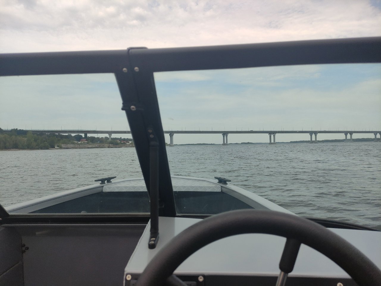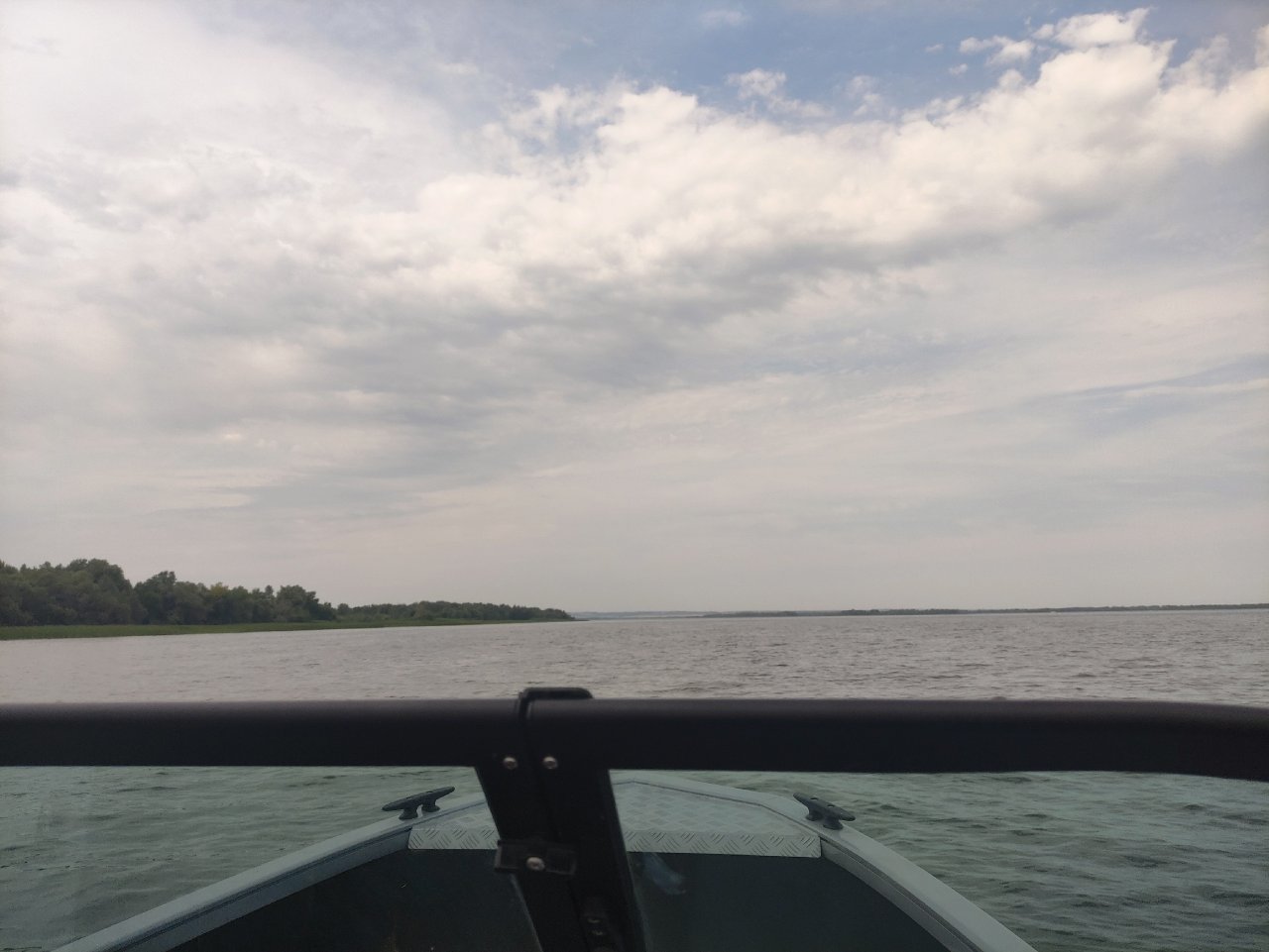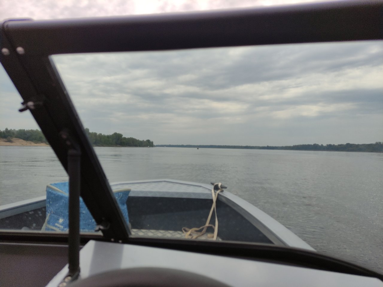 Тут я понимаю, что течение реки не в нашу пользу + вес всего экипажа даёт о себе знать. При 4300об/мин мы движемся со скоростью 33км/ч (хотя обычно это 38-40 против течения).