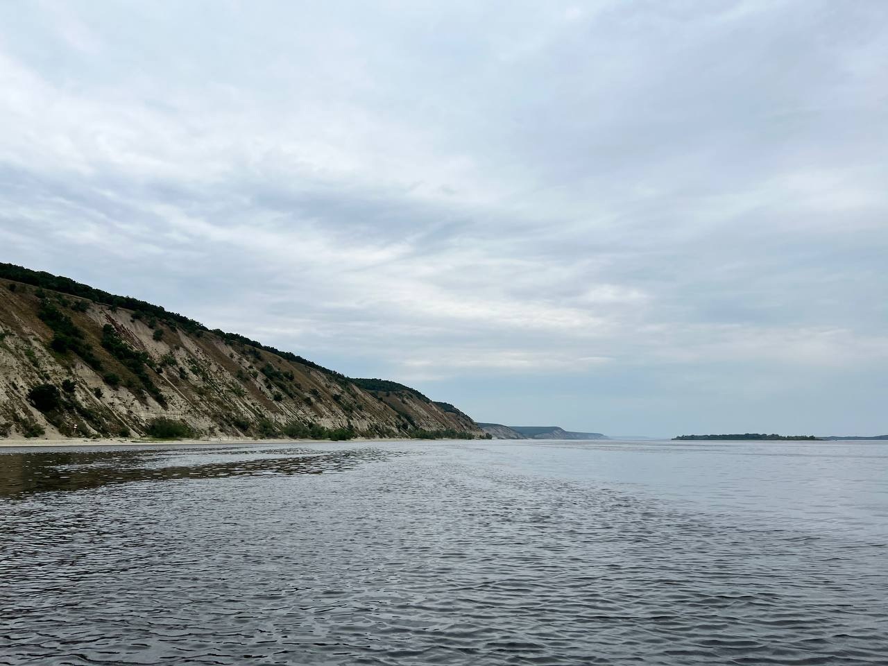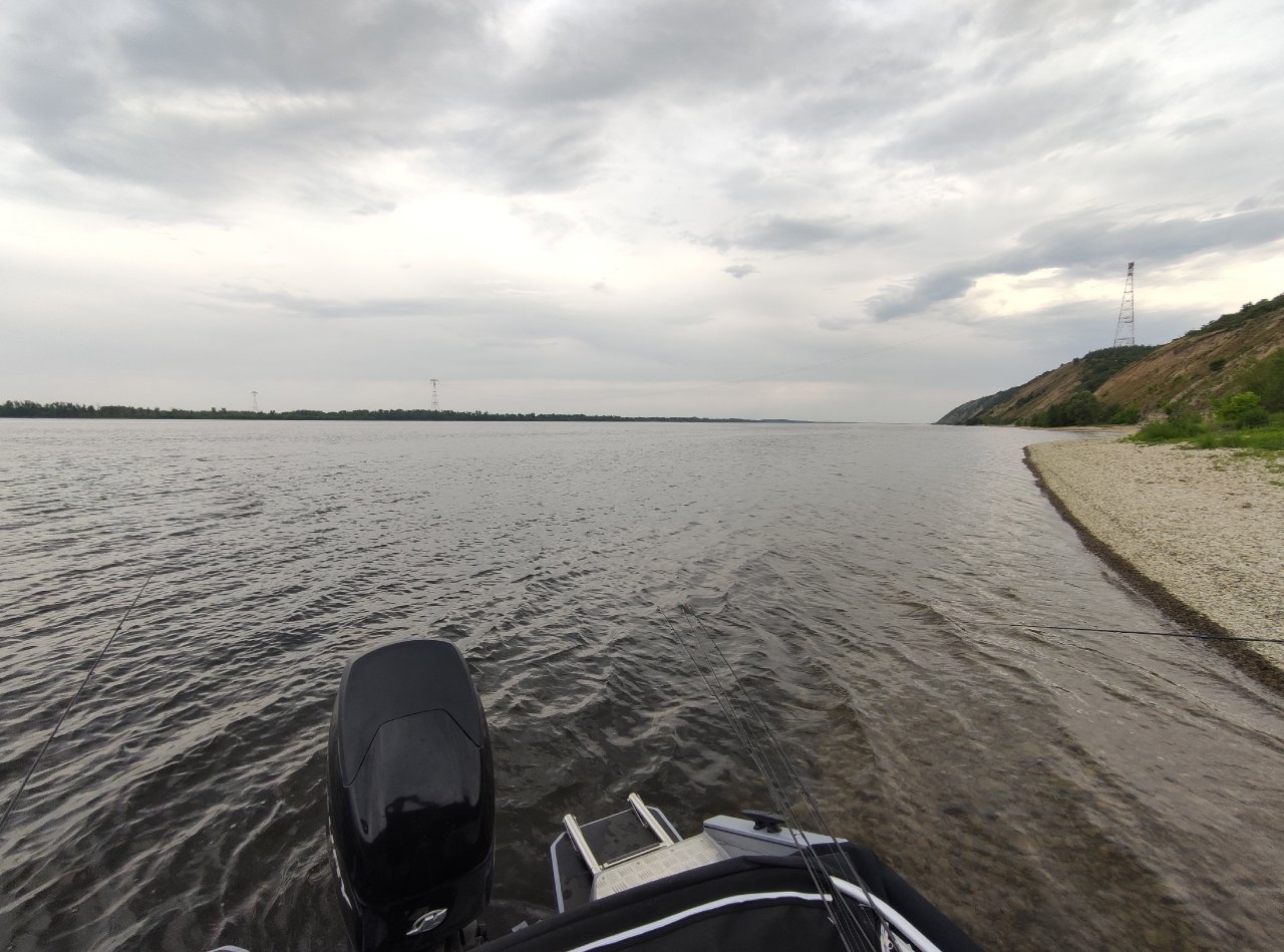 С воды красивый город. Много песчаных берегов. Заметили интересную особенность. После Вольска (а это было утро) на пляжах стоит очень много лодок/катеров полностью на суше. Я так понимаю, из-за близости с ГЭС уровень воды очень сильно скачет, из-за чего и остаются лодки на песке. После Вольска ветер окончательно стих.