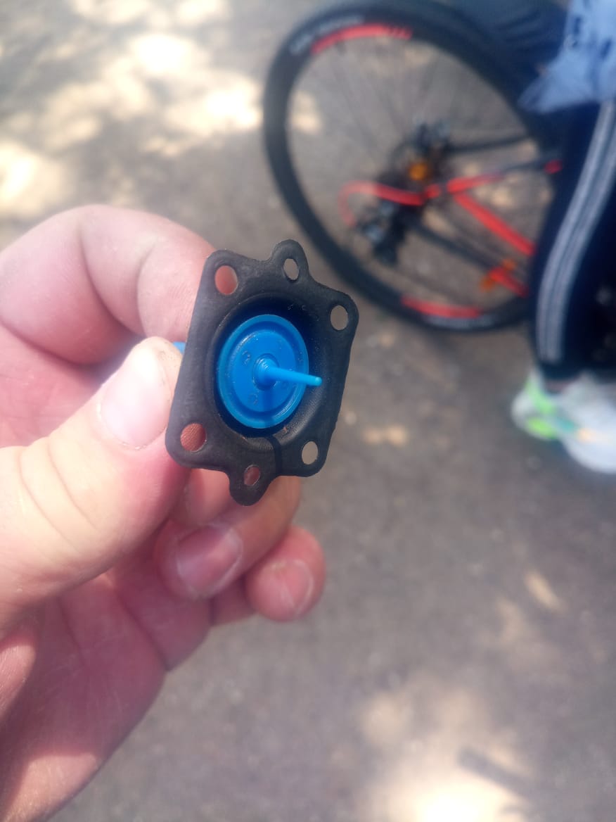 Но случилась неприятность и произошло отслоение резины от пластика на одной из мембран карбюратора. ниже она на фото.