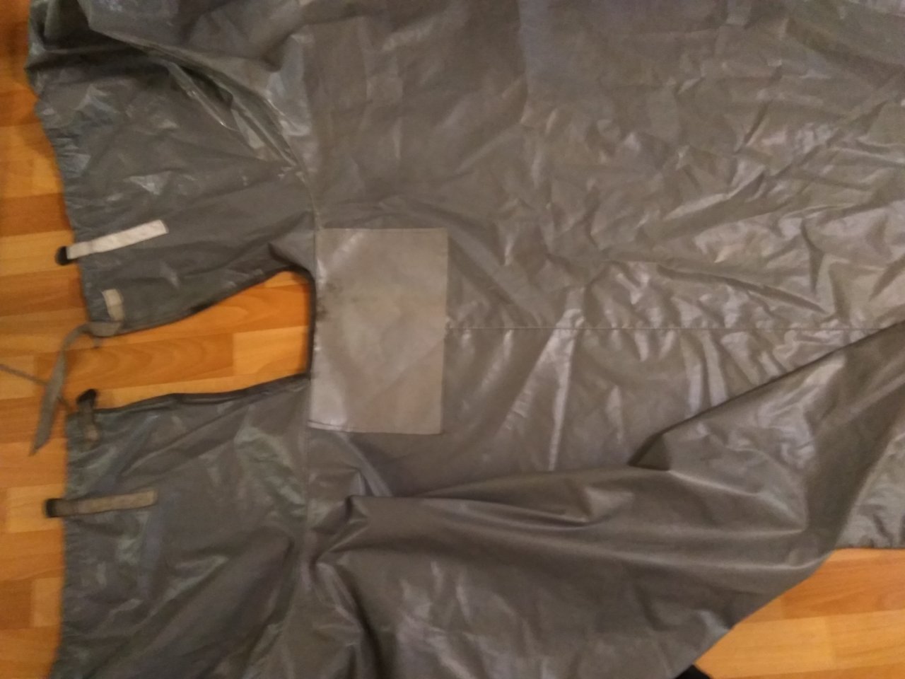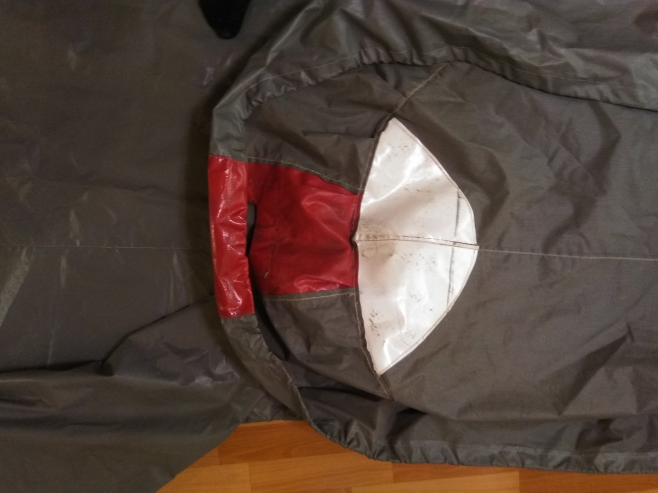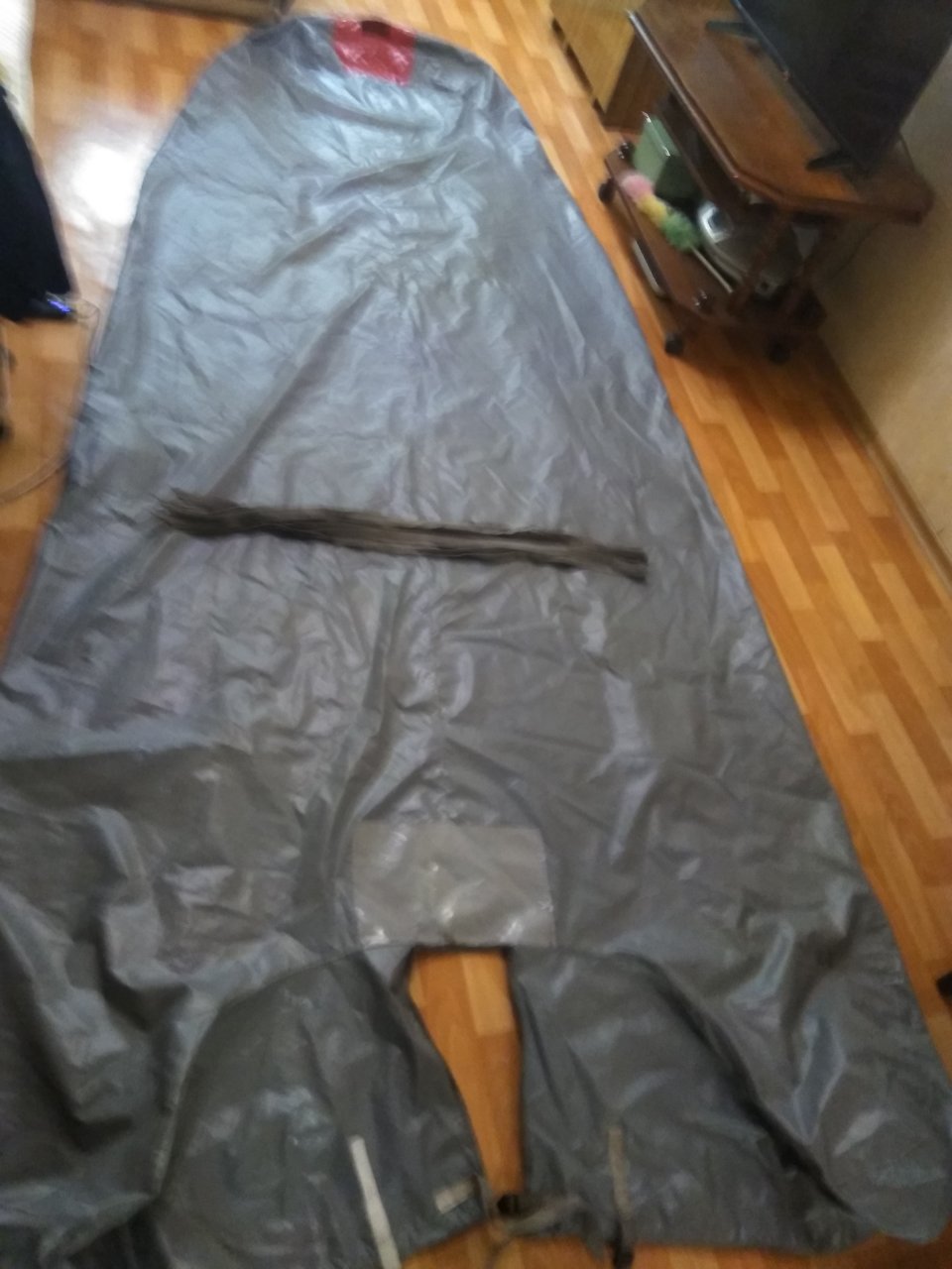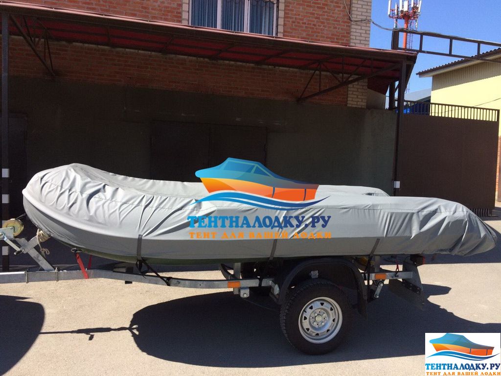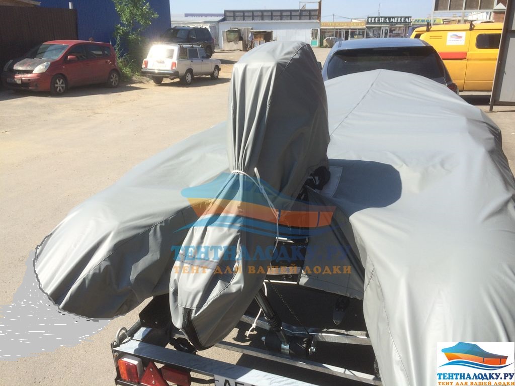 Тент изготовлен из прочной ПВХ ткани BOATCOVER PVC ,состояние отличное. В местах крепления весел самостоятельно внутри усилил тканью ПВХ,в носовой части вшита вставка с отверстием под крепление за лебедку при перевозке на прицепе.