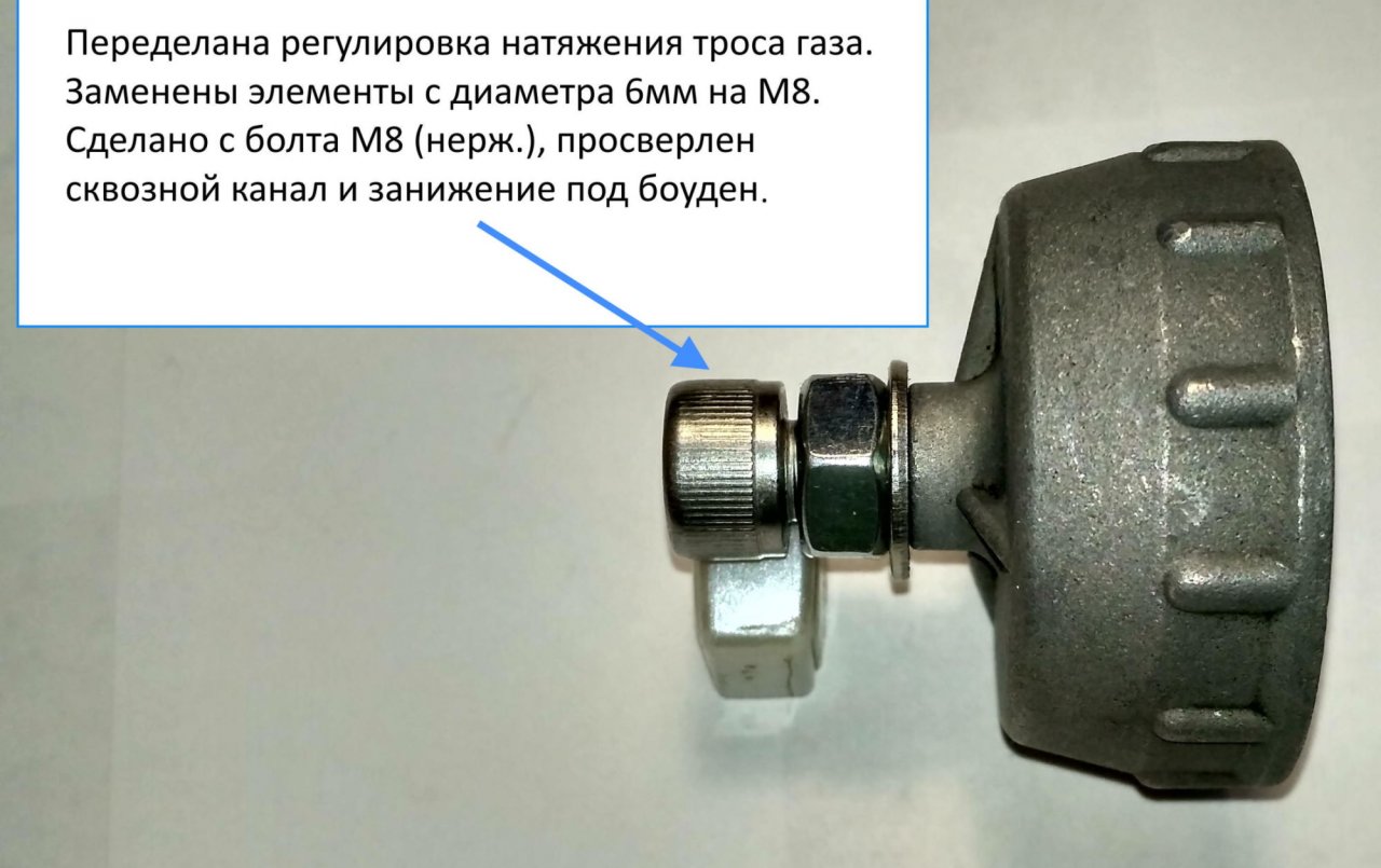 Лепить другой карбюратор очень не хотелось, на его место что-то другое всунуть сложно, мотор компактный.