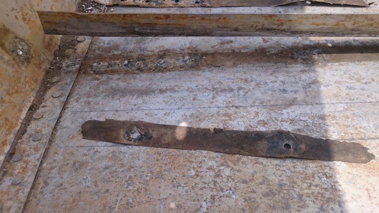Хотел оставить на месте "родные" зетики с кницами, выглядели очень даже ничего. При допросе с пристрастием выяснилось что один зетик вздулся, коррозия внутри. Участок стрингера около 100мм в труху. Поражёные части пришлось удалить. Появились подозрения в неплотном прилегании срингеров к днищу. Поднял стрингеры и вот картина. Теоколовая лента ни какая, в наличии песок и не значительные очаги коррозии.