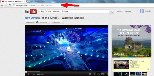 Выбрать подходящий ролик с youtube и скопировать из адресной строки все содержимое: