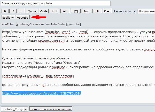 На нашем форуме реализована возможность вставки в сообщение видео с сервиса youtube.com