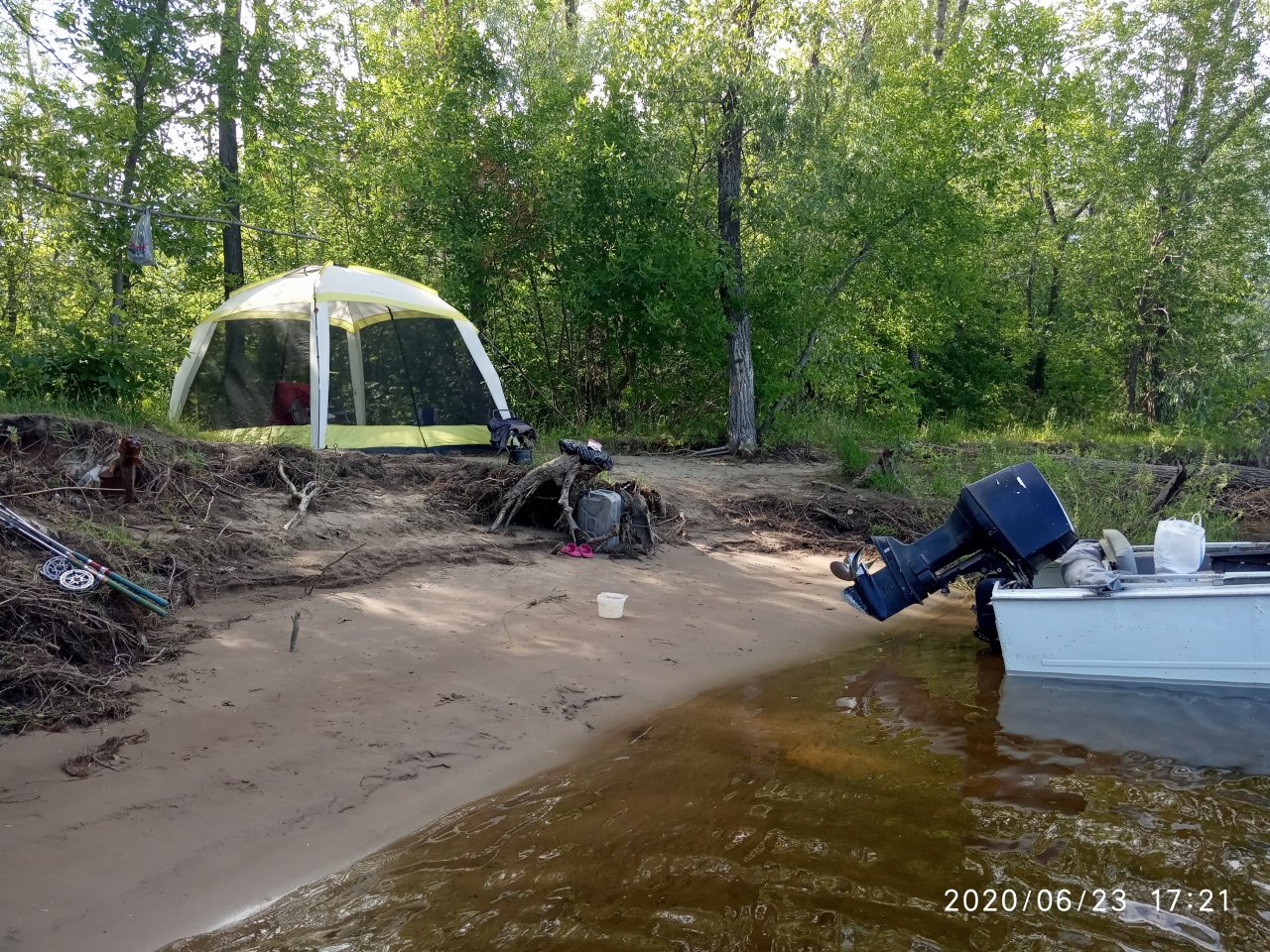 Шатер ставим опять же в зависимости от наличия комаров, если тянет ветерок с воды, комаров нет, он не нужен.