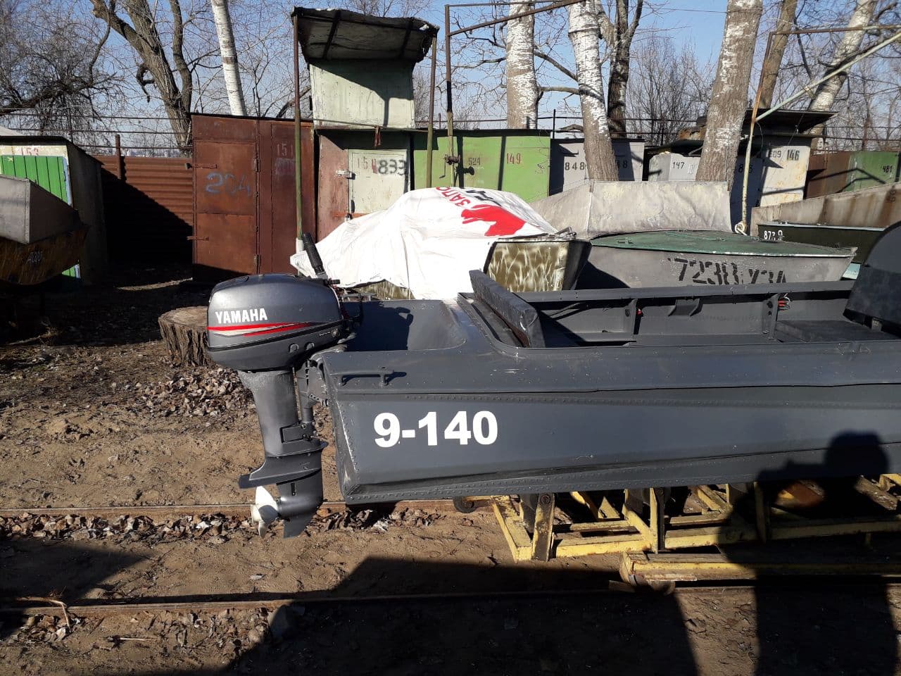 Сегодня на лодочной, устанавливал станину под лодку, под телегу. Пару фоток, с мотором, думаю за дней десять, лед в бухте сойдет, можно будет испытания провести на воде. Жду не дождусь.