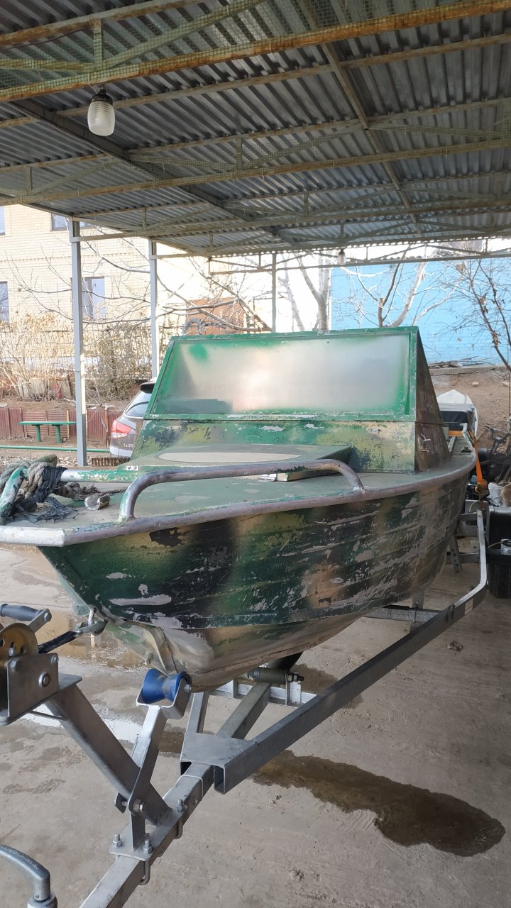 Достался по случаю Wellboat - 45 (Вельбот-45), забрал с базы отдыха, можно сказать за пузырек). Какой то турист налетел на бакен) и помял нос. Сквозных дыр нет, гнили нет от слова вообще.