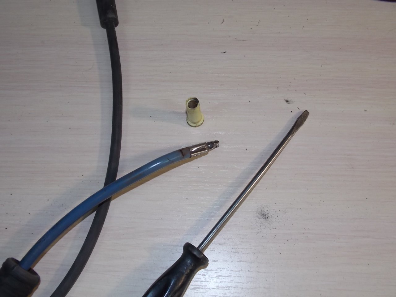 Это ты пишешь, как центральную жилу заменить, не вытаскивая провод из колпачка? Ничего непонятно, что за арматура и как её достать, и как понять - снимается провод, откуда?