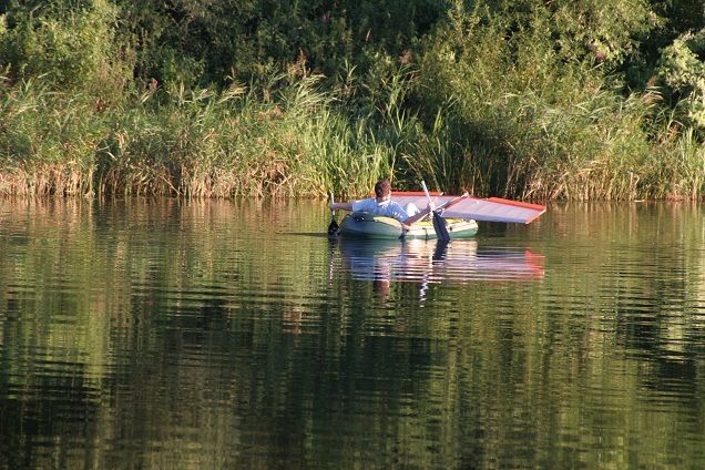 Показалось САМОЛЕТЧИКАМ-очень медленно на веслах.Решили помочь воздушным винтом.Долго потом рыбак Андрюху пытал:сколько будет стоить такая установка к лодке.Короче битый не битую везет.