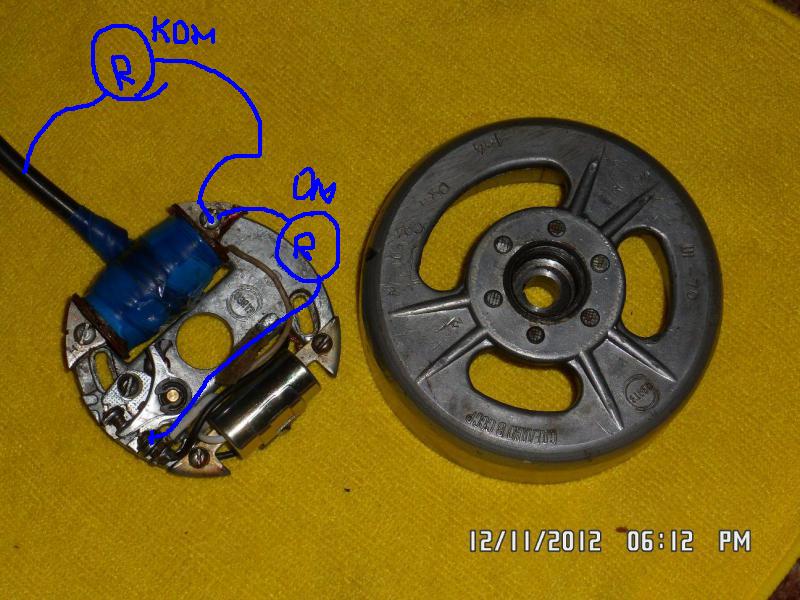 Я в электрике НОЛЬ!!! поэтому прошу помощи,отдавал зажигание электрикам у них там всякие приборы...я в них не малтаю...у них организация электриков (по жд сигнализациям и всей электрофикации ,у них есть спеццы ),они и смотрели.Мех.часть я бы не спрашивал ,делаю сам. А если устанавливать на этот мотор зажигание МБ-1 от пилы Урал,кроме переходной шайбы под магнетто ,с махавиком моим не получится??? Надо ещё с ним что то творить? у пилы конус больше диаметр. :|