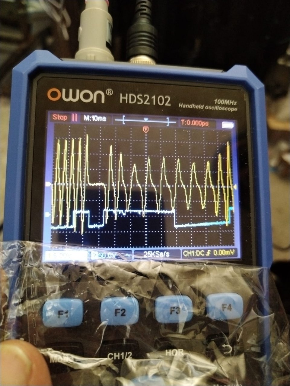 Эта осцилл того что сейчас происходит , сигнал желтый с датчика колена , синий с датчика распреда , сигналы снимали с датчиков напрямую. На катушках кроме питания ничего нет , тишина