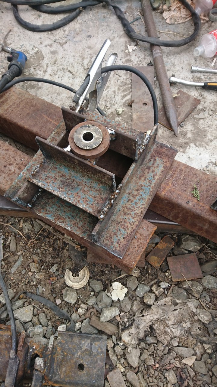 Два болта обоймы я выкрутил. После нагрева. Далее сделал рамку из уголков. Токарь выточил гайку. За вал держу. Гайку кручу. Поддалась обойма только после нагрева ноги с двух сторон. Вэдэшкой в шов залил. Потом болты обратно вкрутил. Аккуратно вернул ее на место. И так туда сюда. Туда сюда. Щель три миллиметра нарисовалась. Провернуть обойму невозможно. Она плоскостями сидит в корпусе.