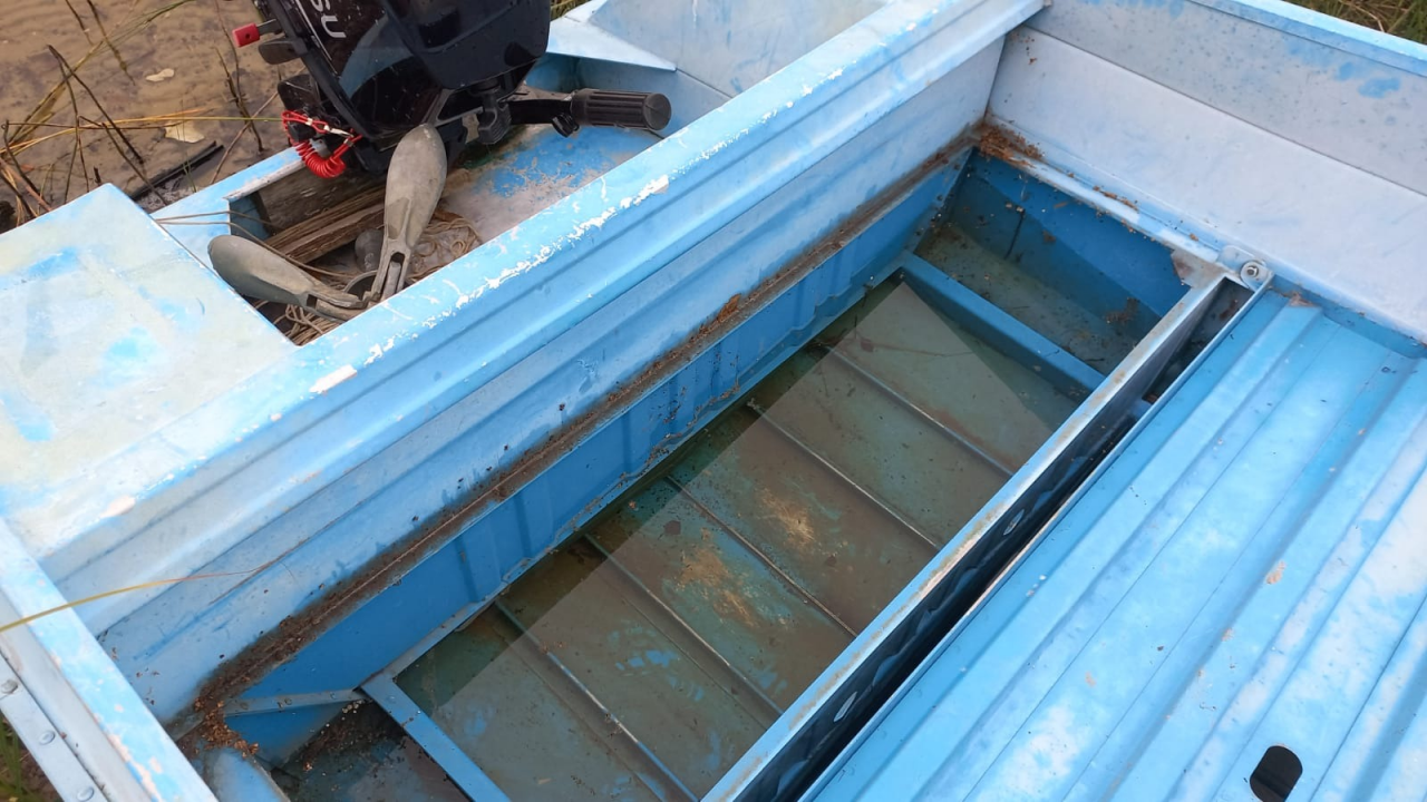Задумался о некой модернизации моего "деревенского" немана - и первое что хочу сделать - разобраться с перегородкой у кормы под рундуком. У меня эта перегородка полностью закрывает доступ в пространство под рецессом, что крайне не удобно, так как там уже склеп из случайно заплывших туда по дну и протухших окуней. Вот мой линкор (хранение уличное, идут дожди - не обессудьте) :